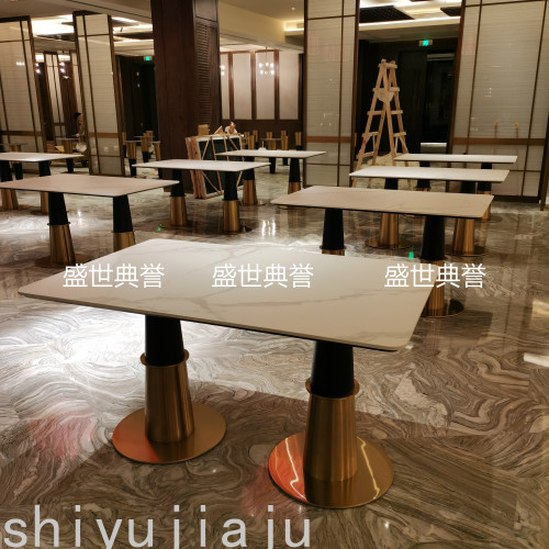 Guangzhou Five-Star Hotel Western Restaurant Tables and Chairs Hotel Buffet Restaurant Italian Stone Plate Dining Table