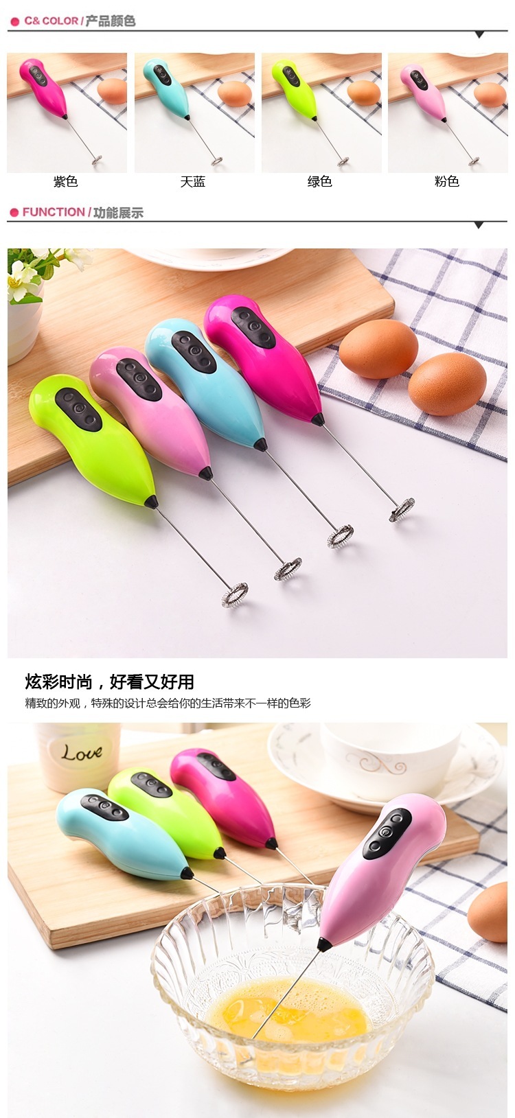 Kitchen stainless steel electric whisk mini coffee mixer automatic milk frother