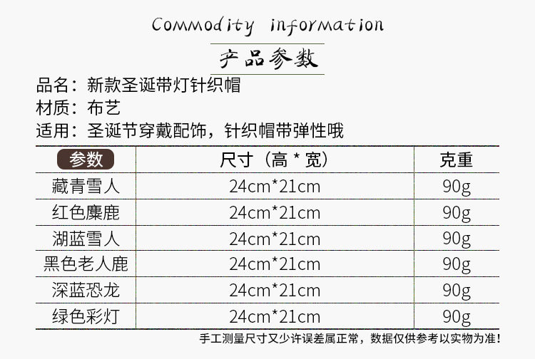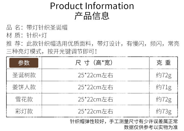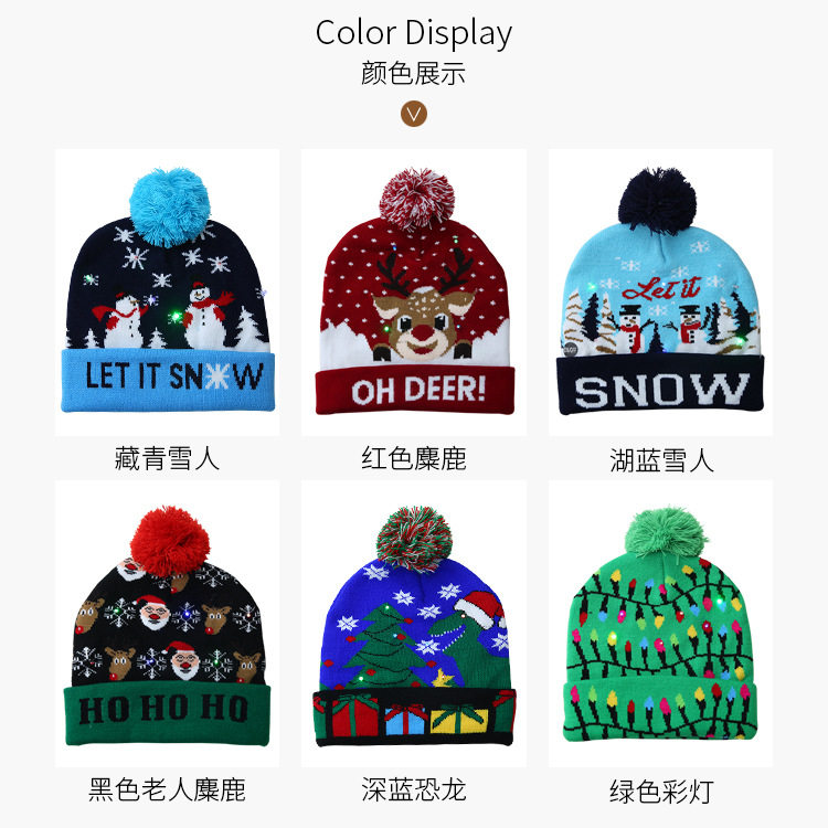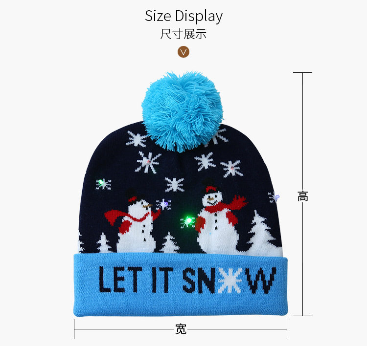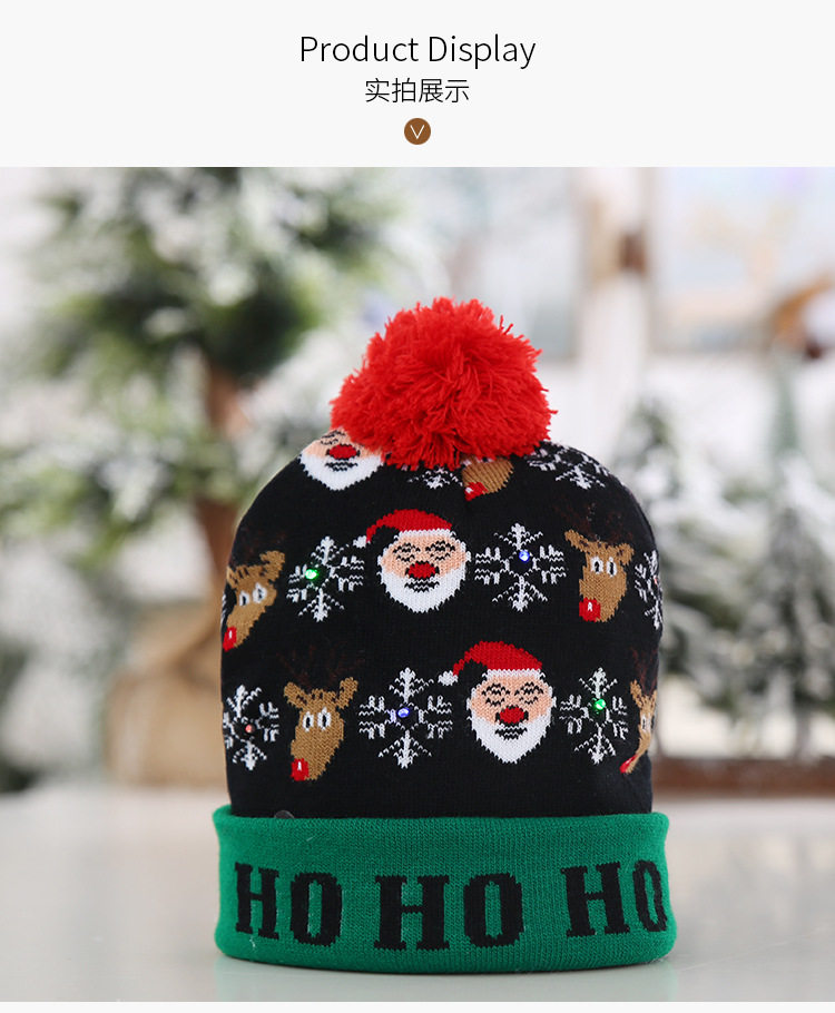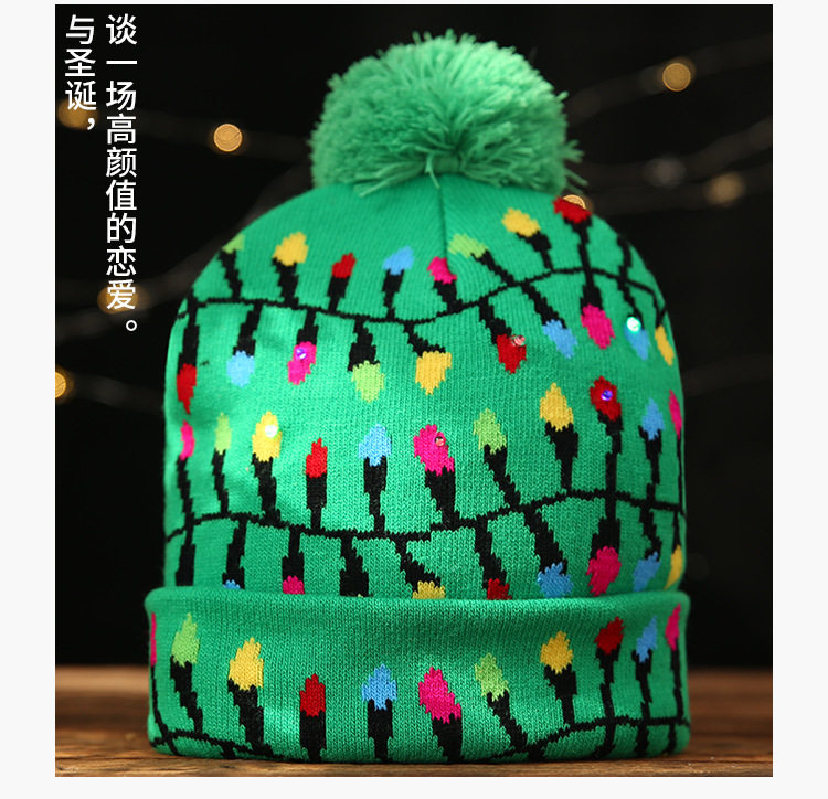 \ \Knitted woolen cap, with LED colorful dazzling lights, there are three kinds of changes in the light, which can be switched. The built-in disposable button battery cannot be replaced or washed.