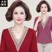 Mom Top Short Long Sleeve V-neck Western Style Solid Color Large Size Middle-Aged and Elderly Women's Bottoming Shirt