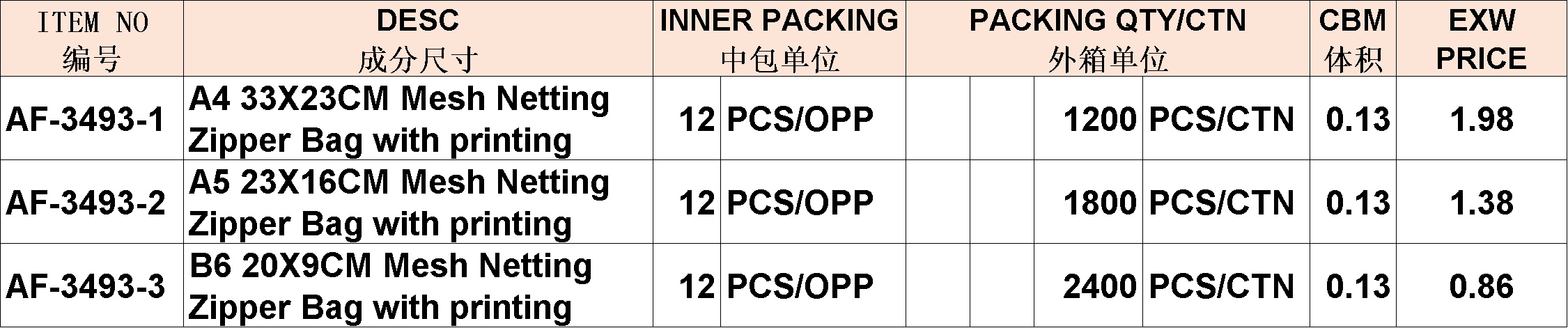 A4 A5 B6 33X23CM Mesh Netting Zipper Bag with printing PVC AF-3493