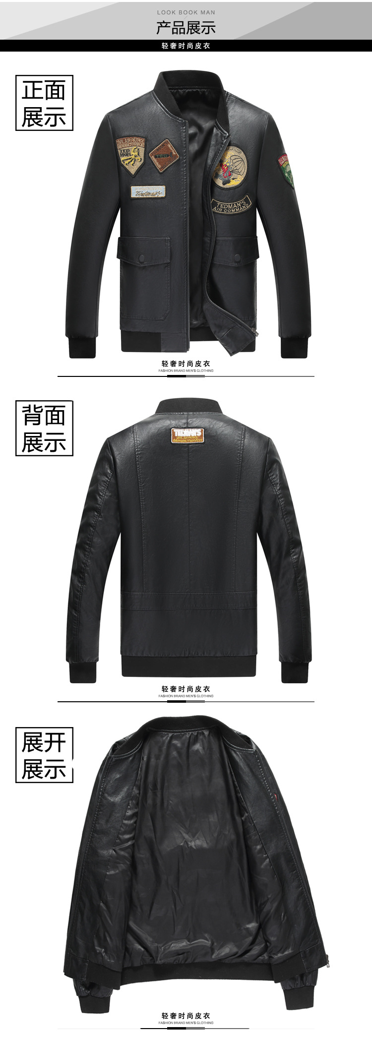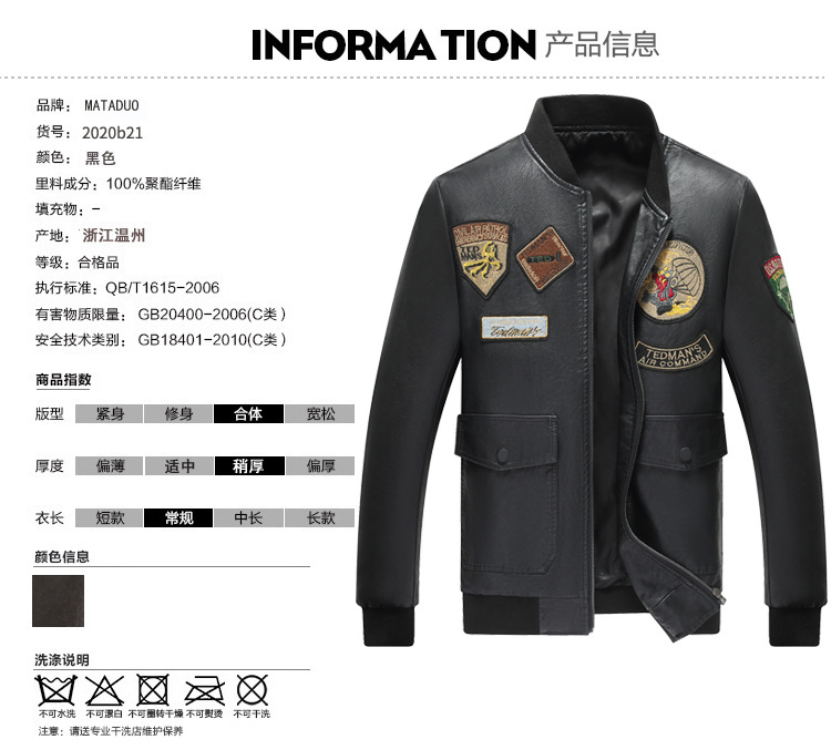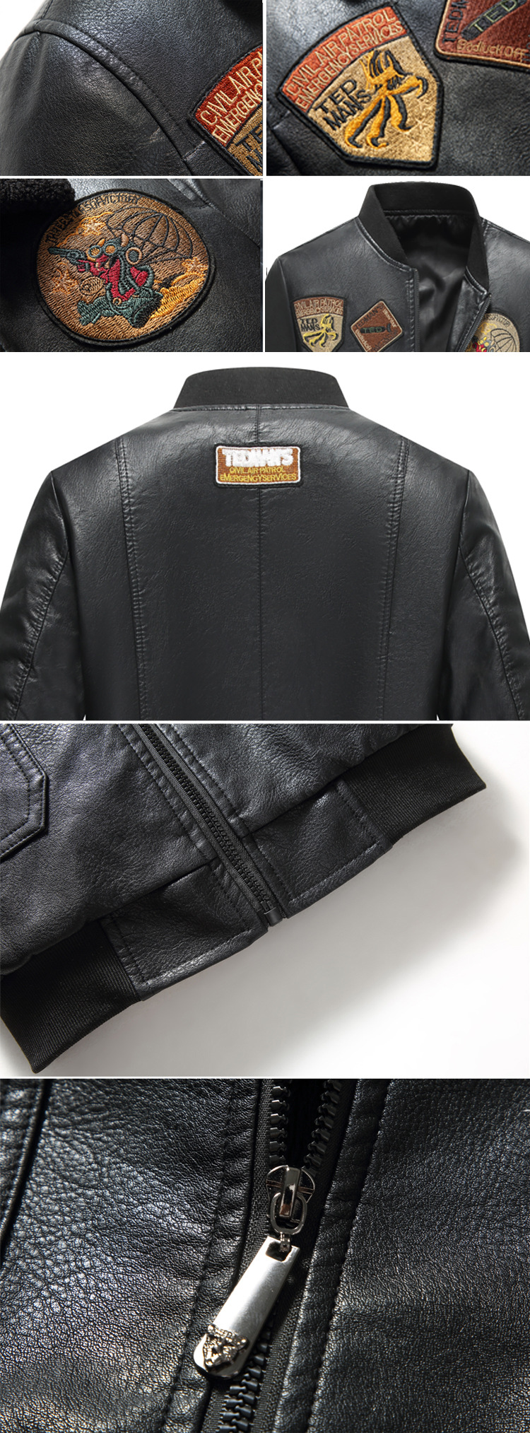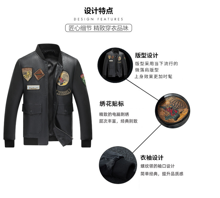 2021 Amazon Cross-Border New Arrival Leather Jacket Men's Baseball Uniform Thin Airborne Embroidery Flight Suit PU Leather Jacket