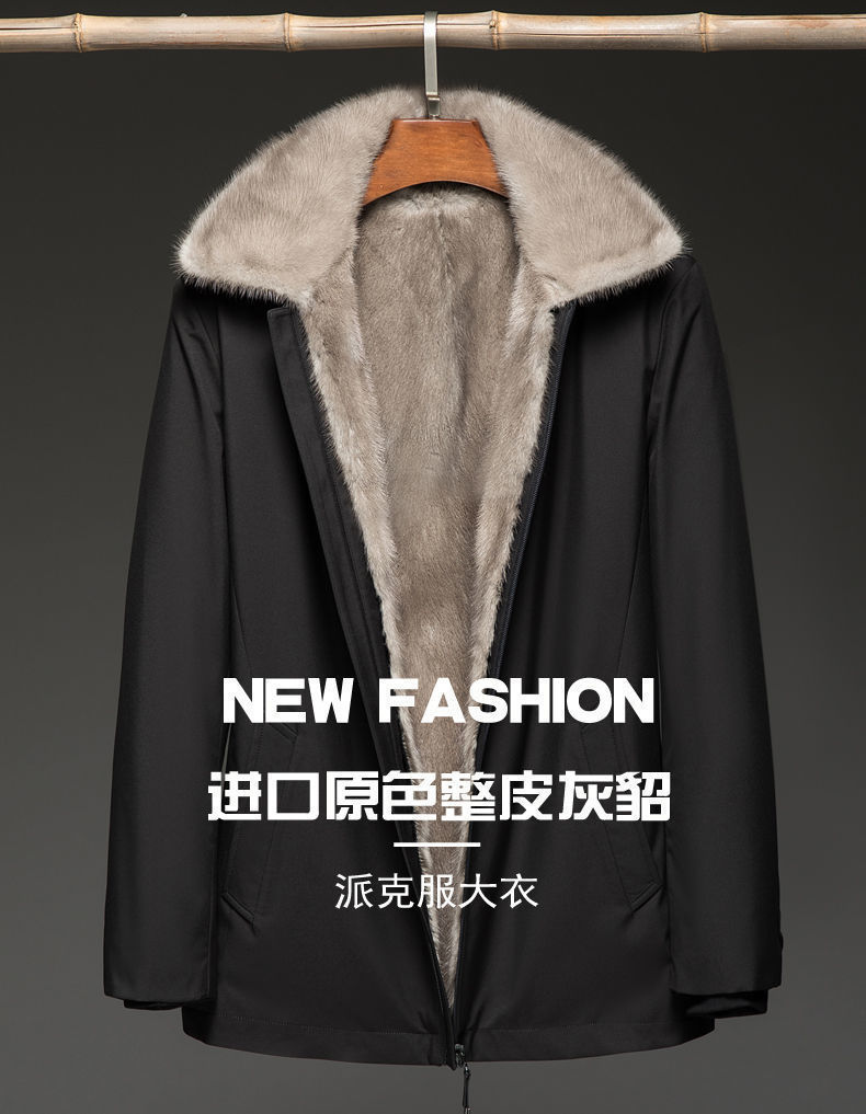 Parka Men's Silver Blue Mink Fur Liner Fur Coat Fur Nick Haining Warm Jacket Winter