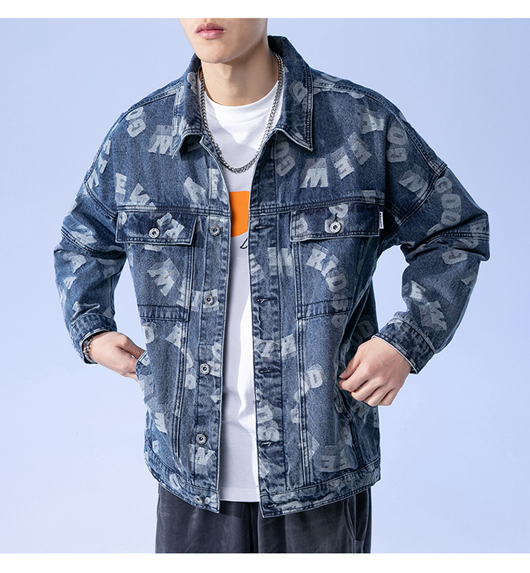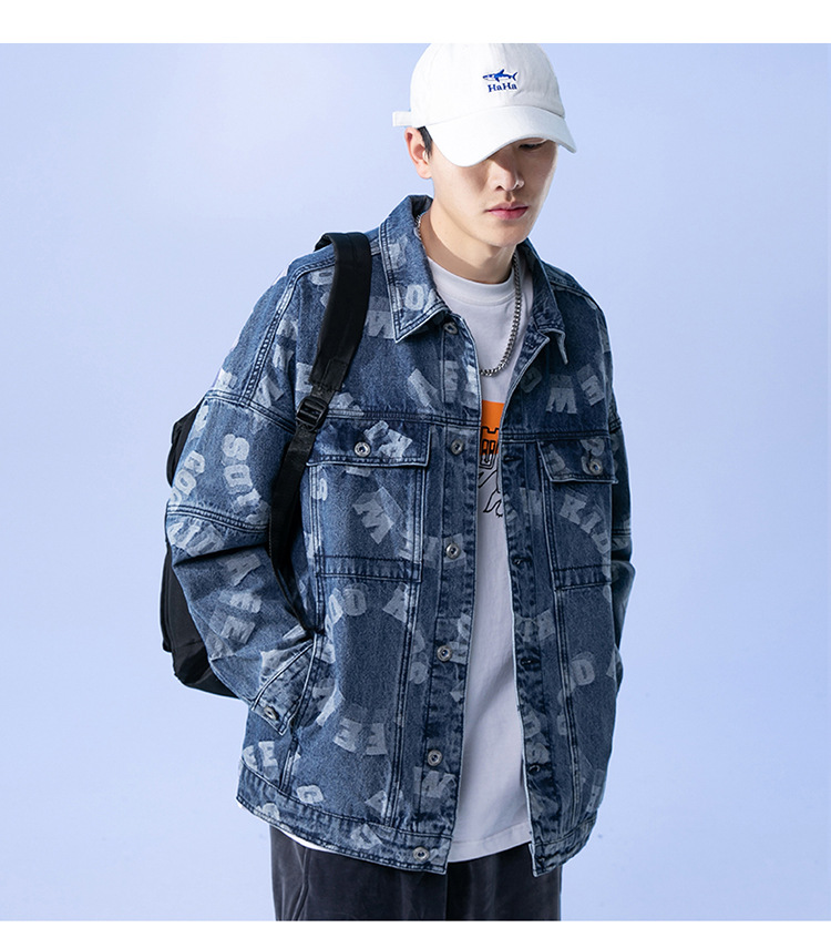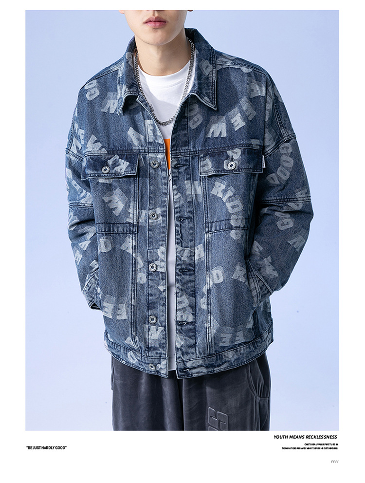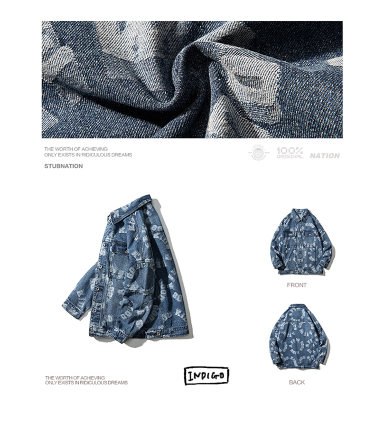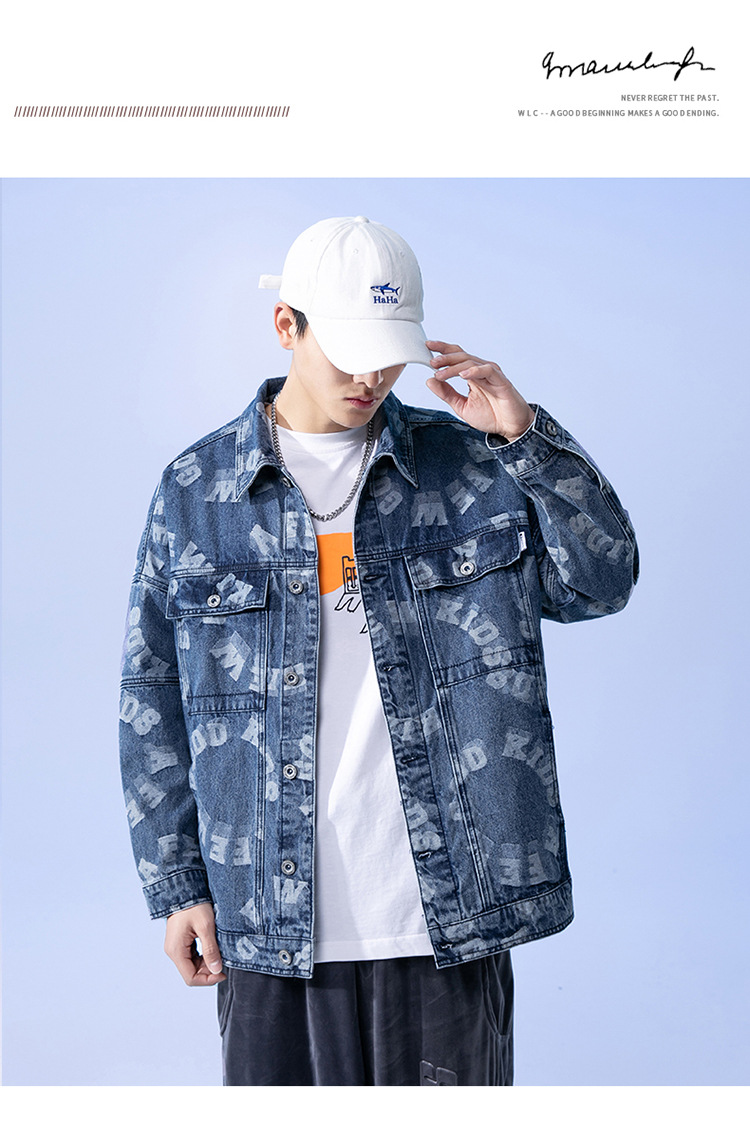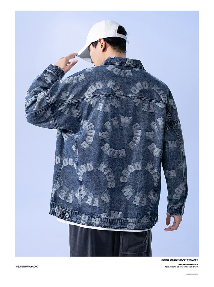 Lktm Men's# Jacquard Denim Jacket Men's Spring and Autumn New Versatile Loose Japanese Style Trendy Brand plus-Sized Size Jacket