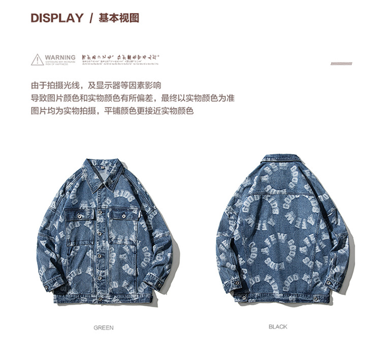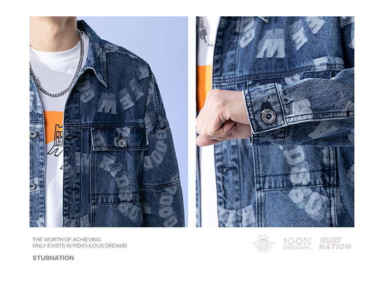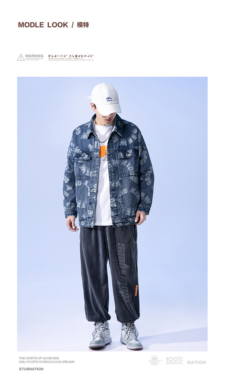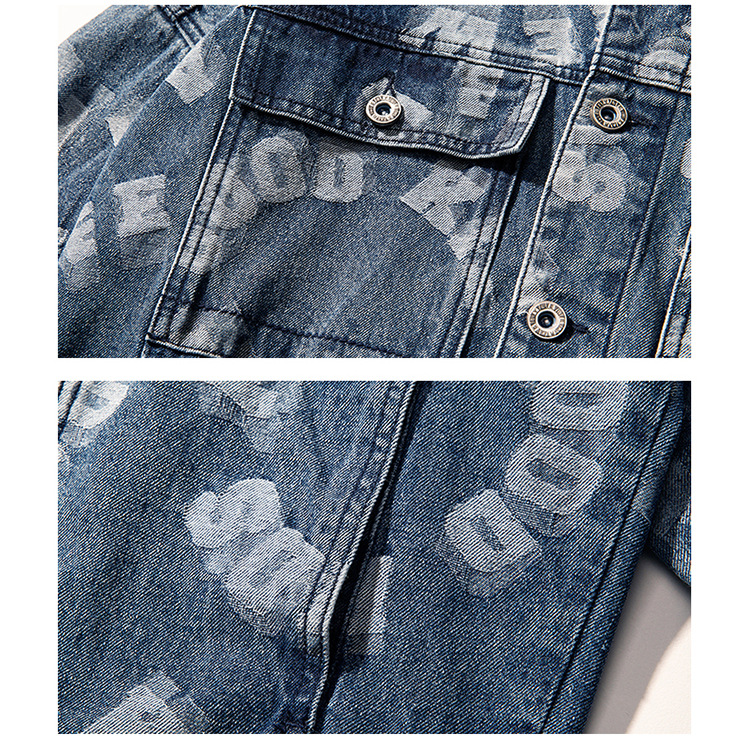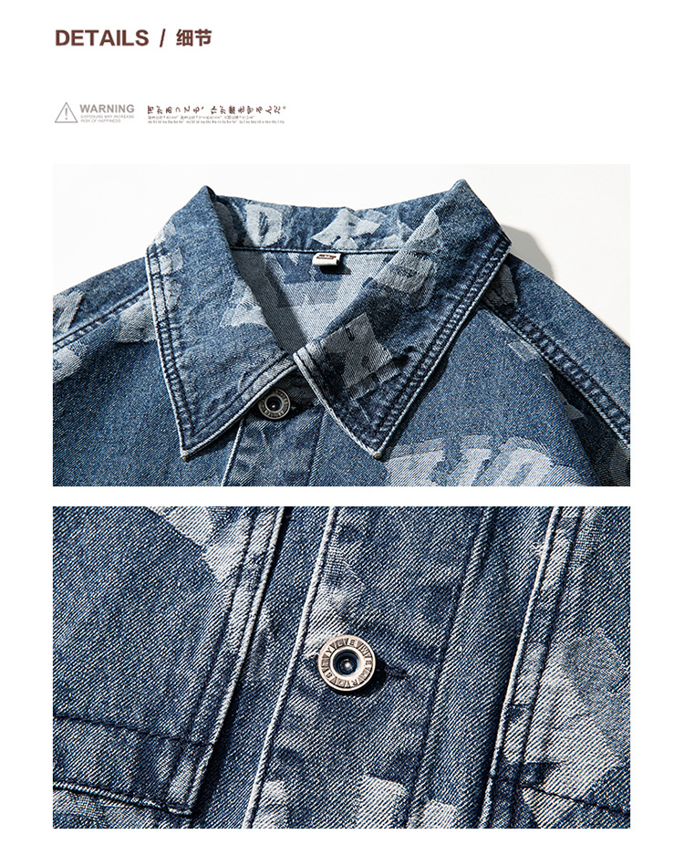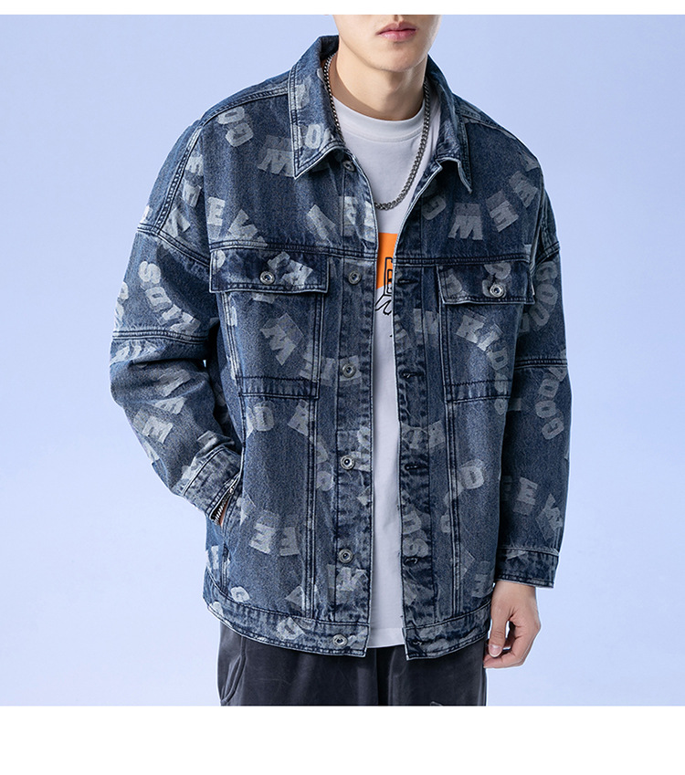 Lktm Men's# Jacquard Denim Jacket Men's Spring and Autumn New Versatile Loose Japanese Style Trendy Brand plus-Sized Size Jacket