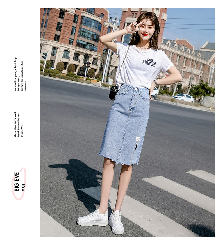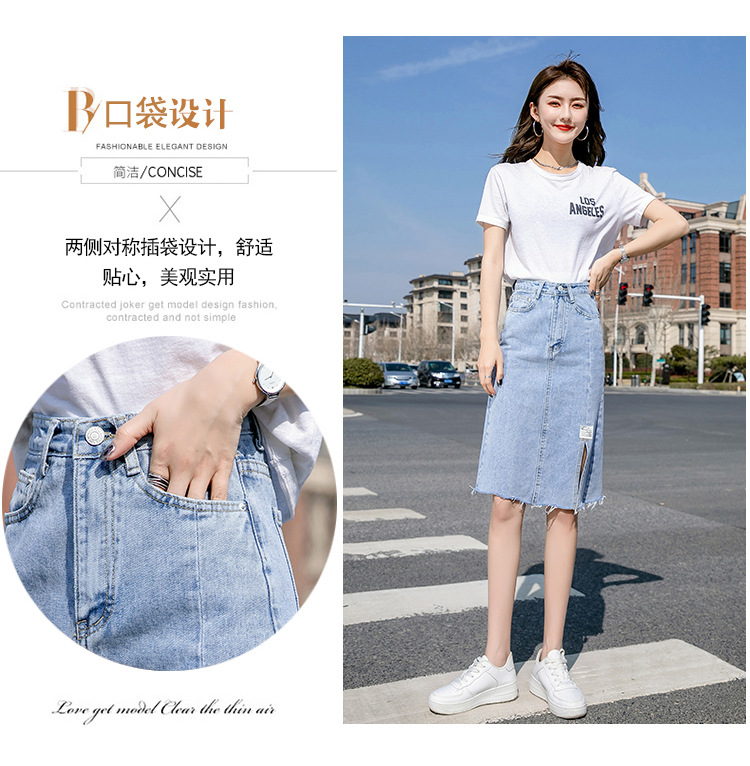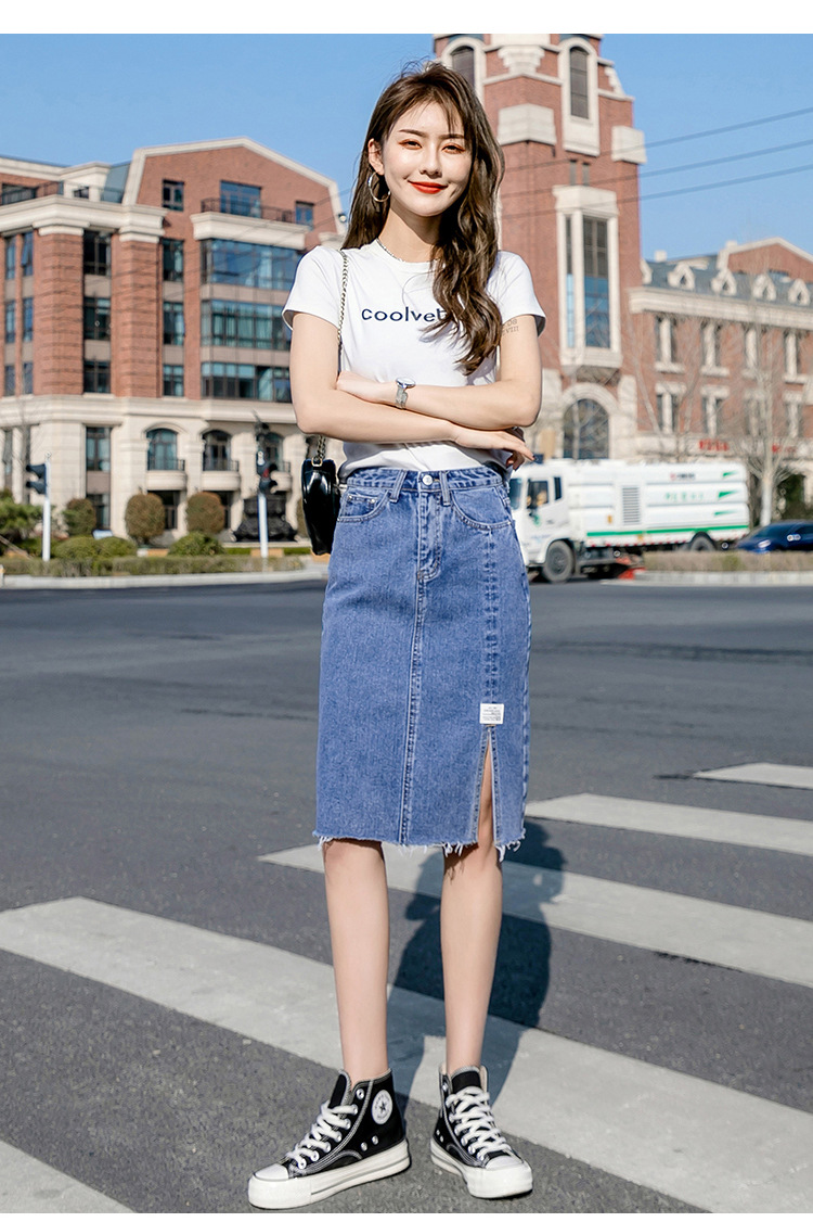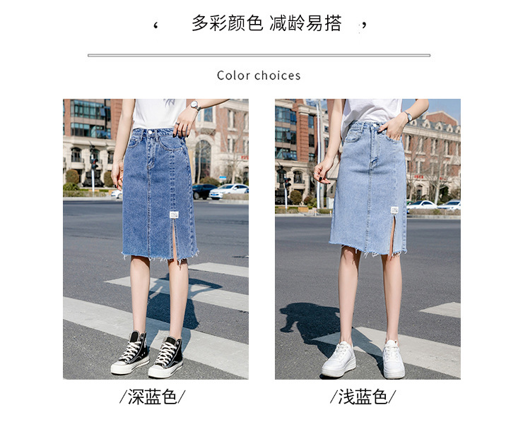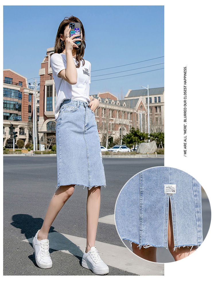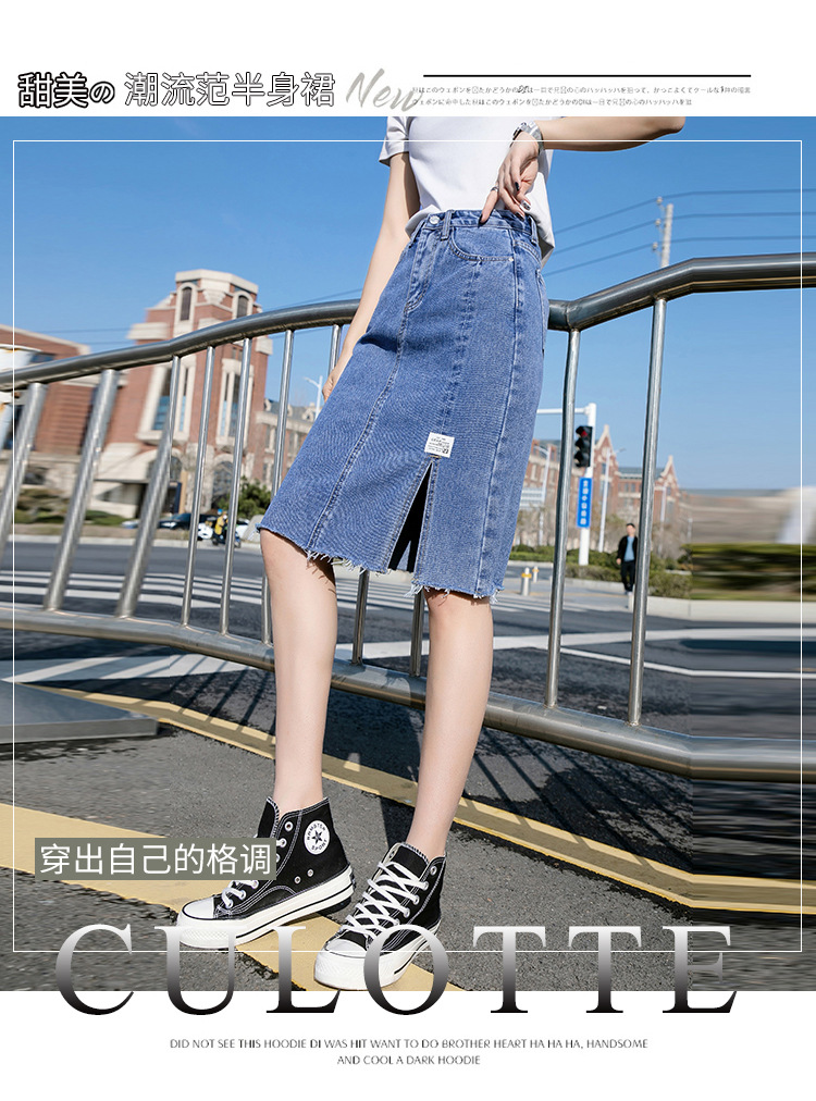 Real Shot Irregular Denim Skirt Women's Spring/Summer 2021 New Korean Style Split Mid-Length High Waist Denim Skirt for Women