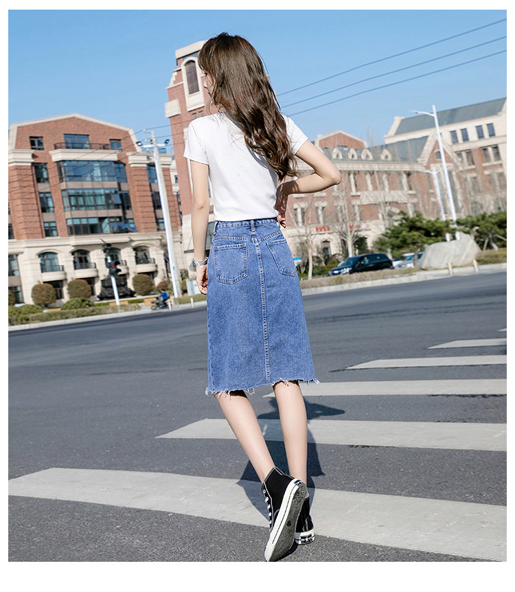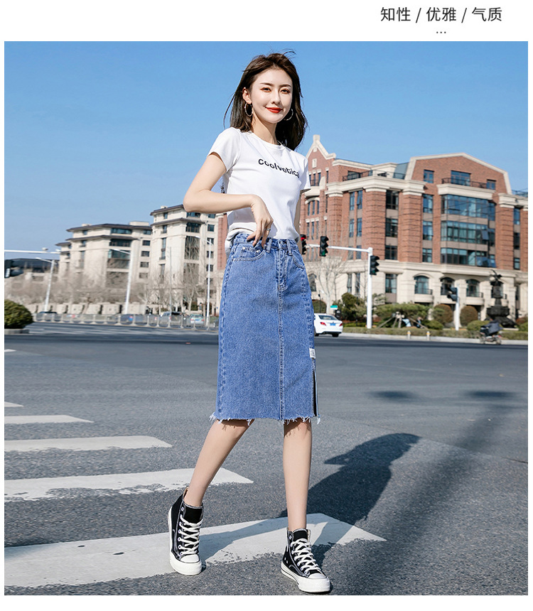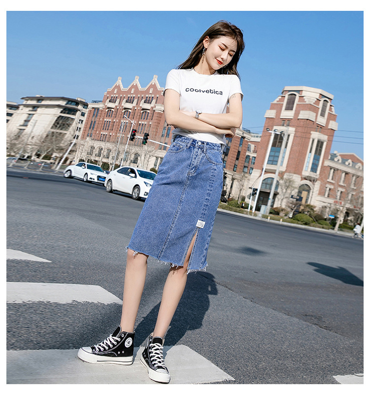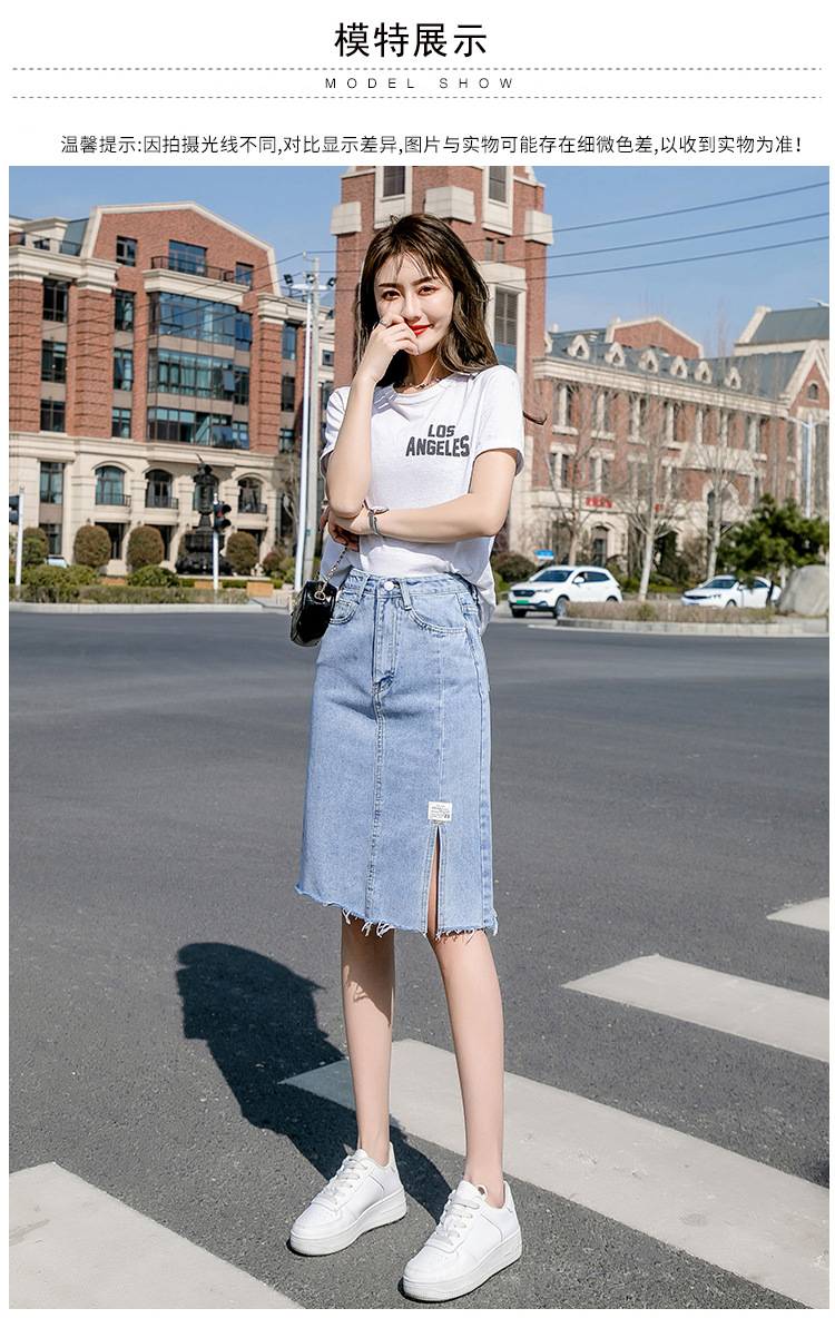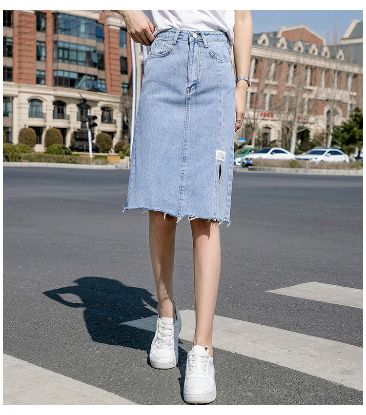 Real Shot Irregular Denim Skirt Women's Spring/Summer 2021 New Korean Style Split Mid-Length High Waist Denim Skirt for Women