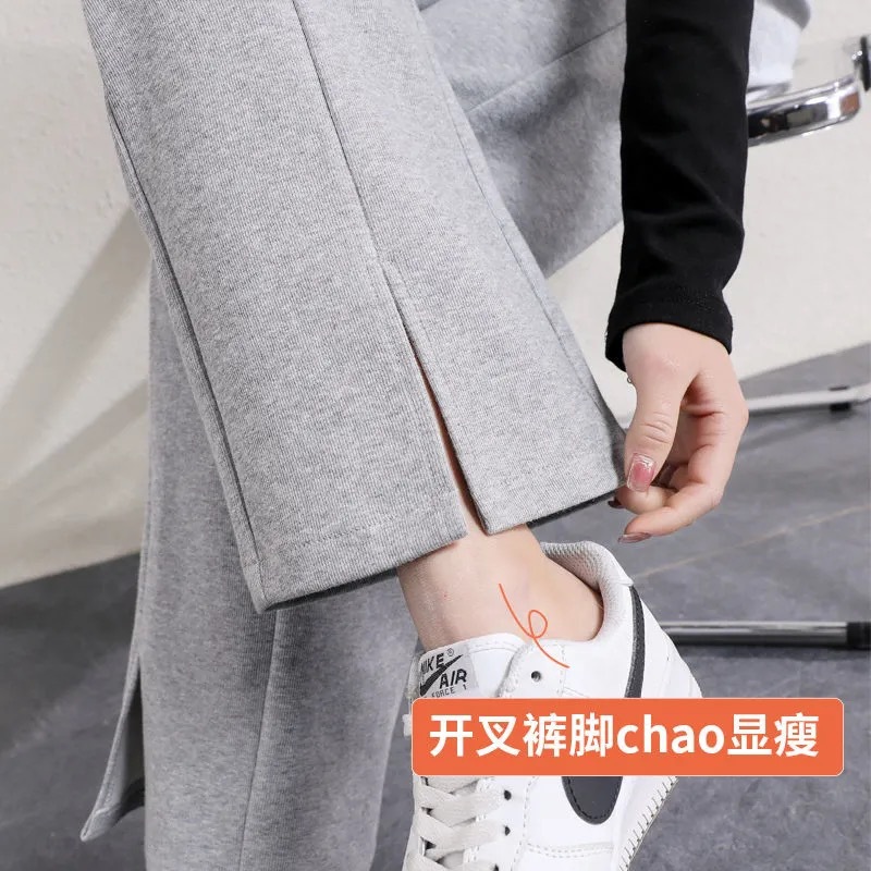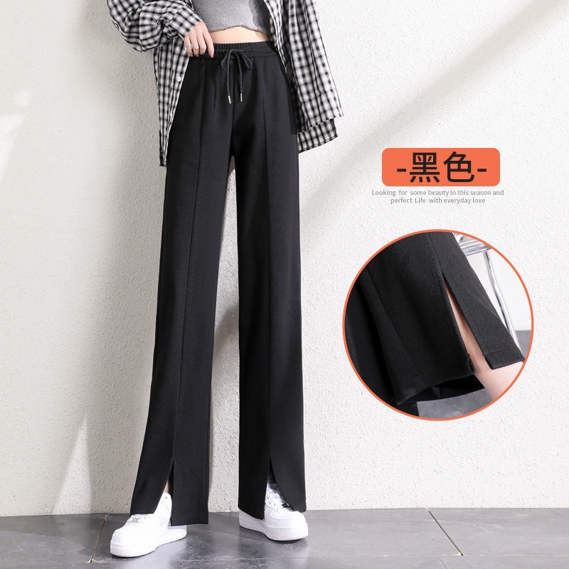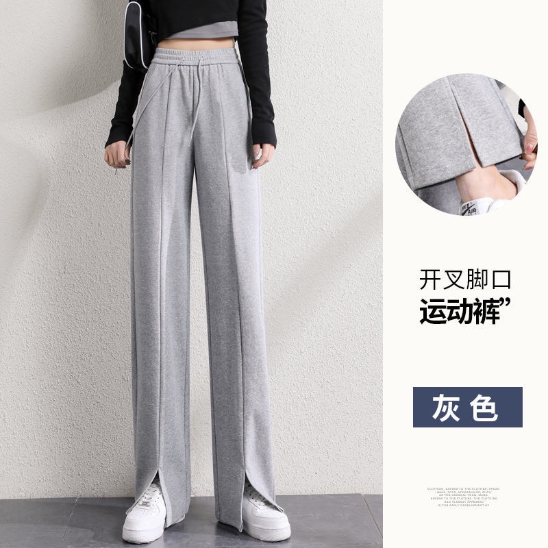 Split Wide Leg Pants Women's Spring/Summer 2021 New High Waist Slimming and Straight Loose Drooping Retro Sports Casual Sweatpants