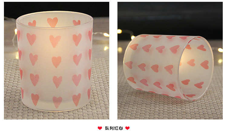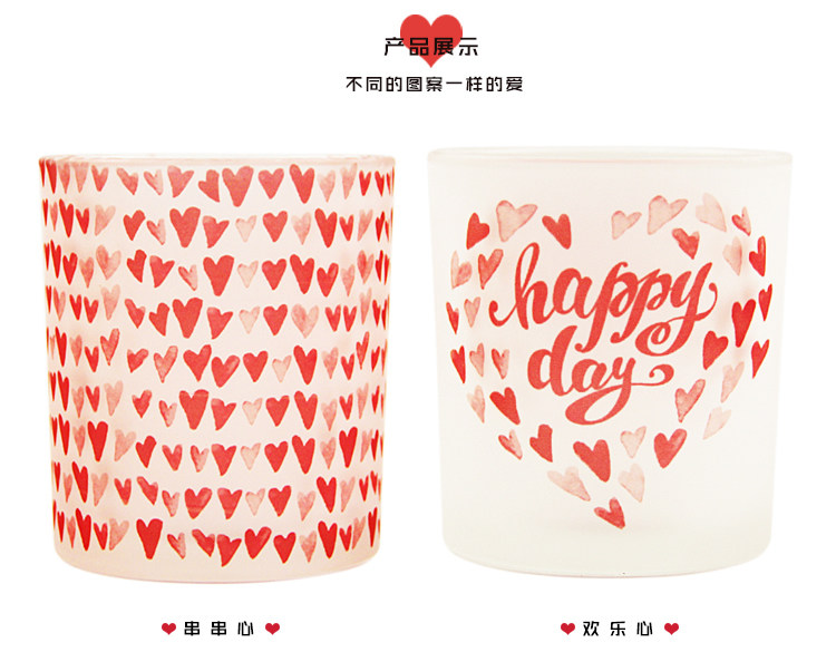 【Jian Mei Heart-shaped Pattern Romantic Glass Candlestick】 Material: Glass Size: Diameter 8CM, Height 9CM Weight: About 0.3KG with packaging. Suitable for: Romantic candlelight dinner, DIY scented candle cups, decoration, gift Remark: Independent safety packaging in brown box |