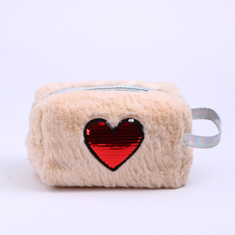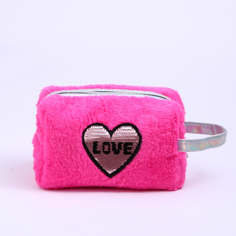 plush colorful love sequins decoration clutch coin purse women's portable outdoor storage bag portable cosmetic bag