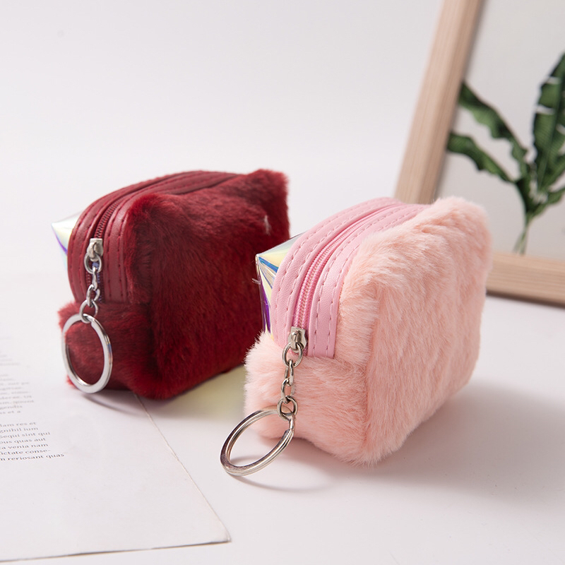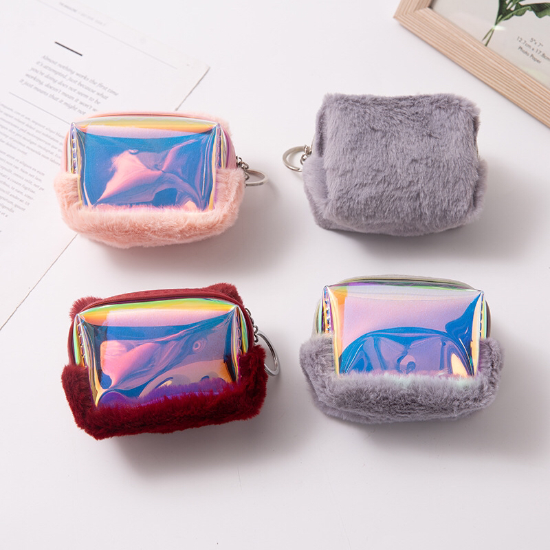 korean style fashion new glow bright leather plush zipper coin purse for girls high-end elegant small cosmetic bag