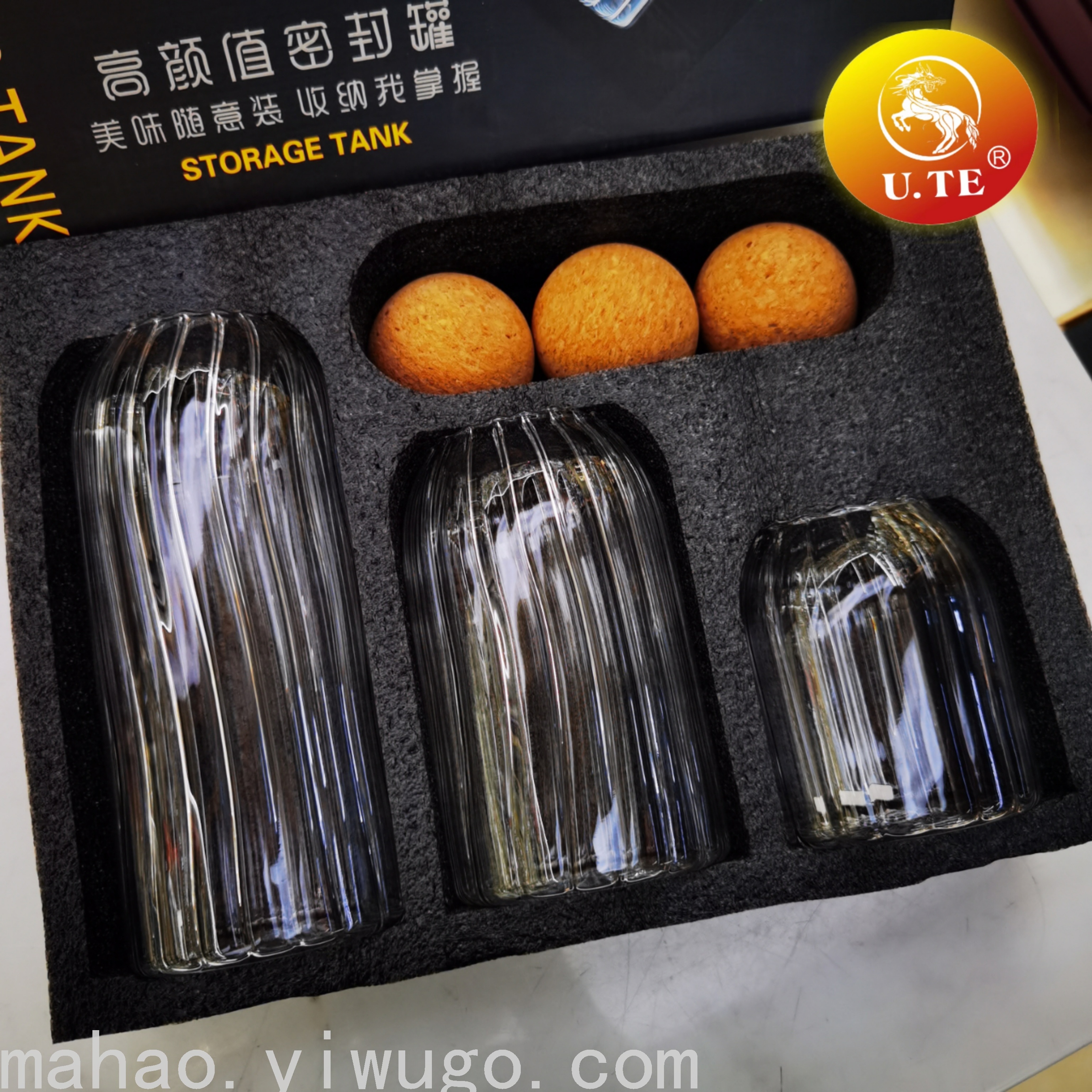 Wooden Plug Striped Glass Sealed Can Three-Piece Set