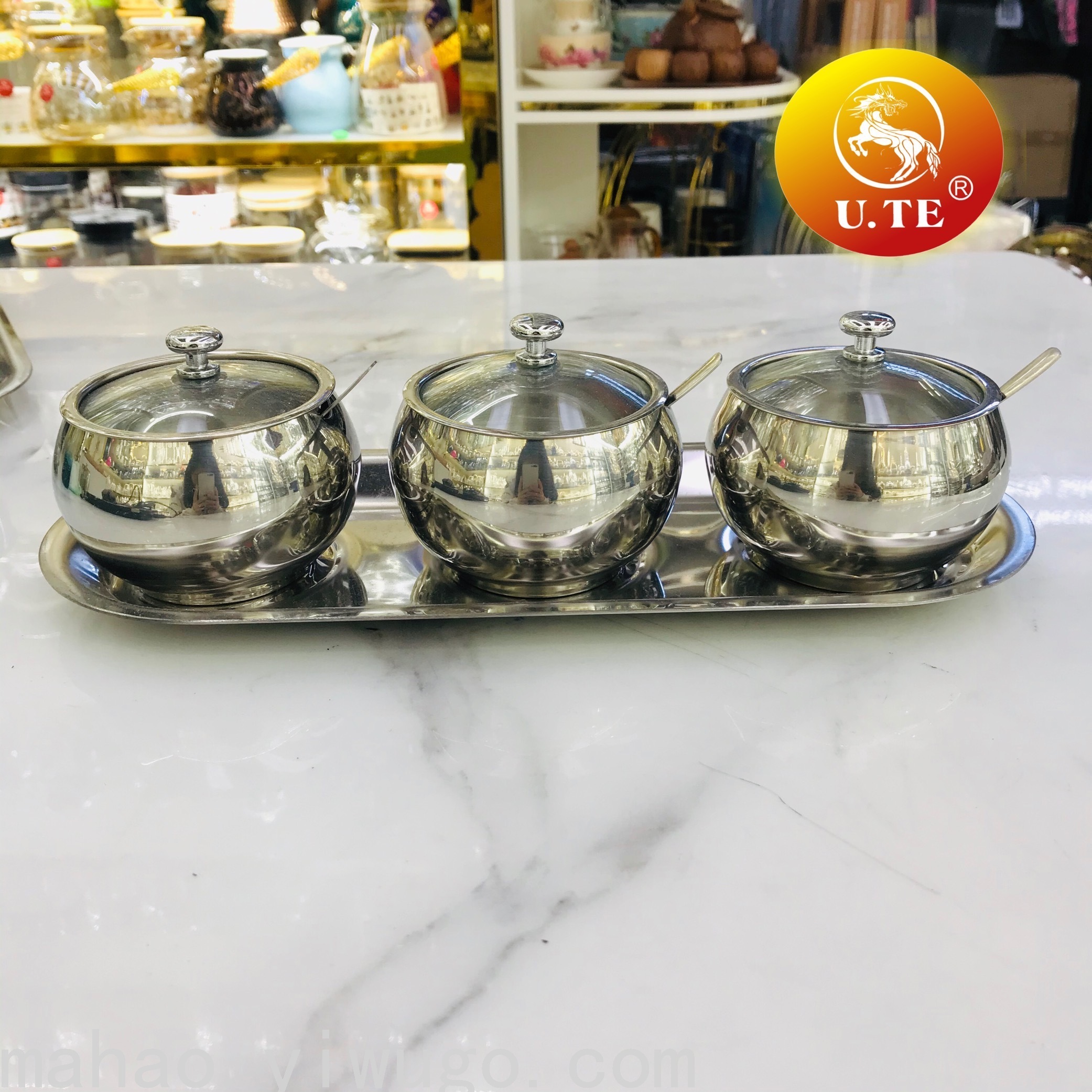 Stainless Steel Barrel-Type Seasoning Jar Three-Piece Set