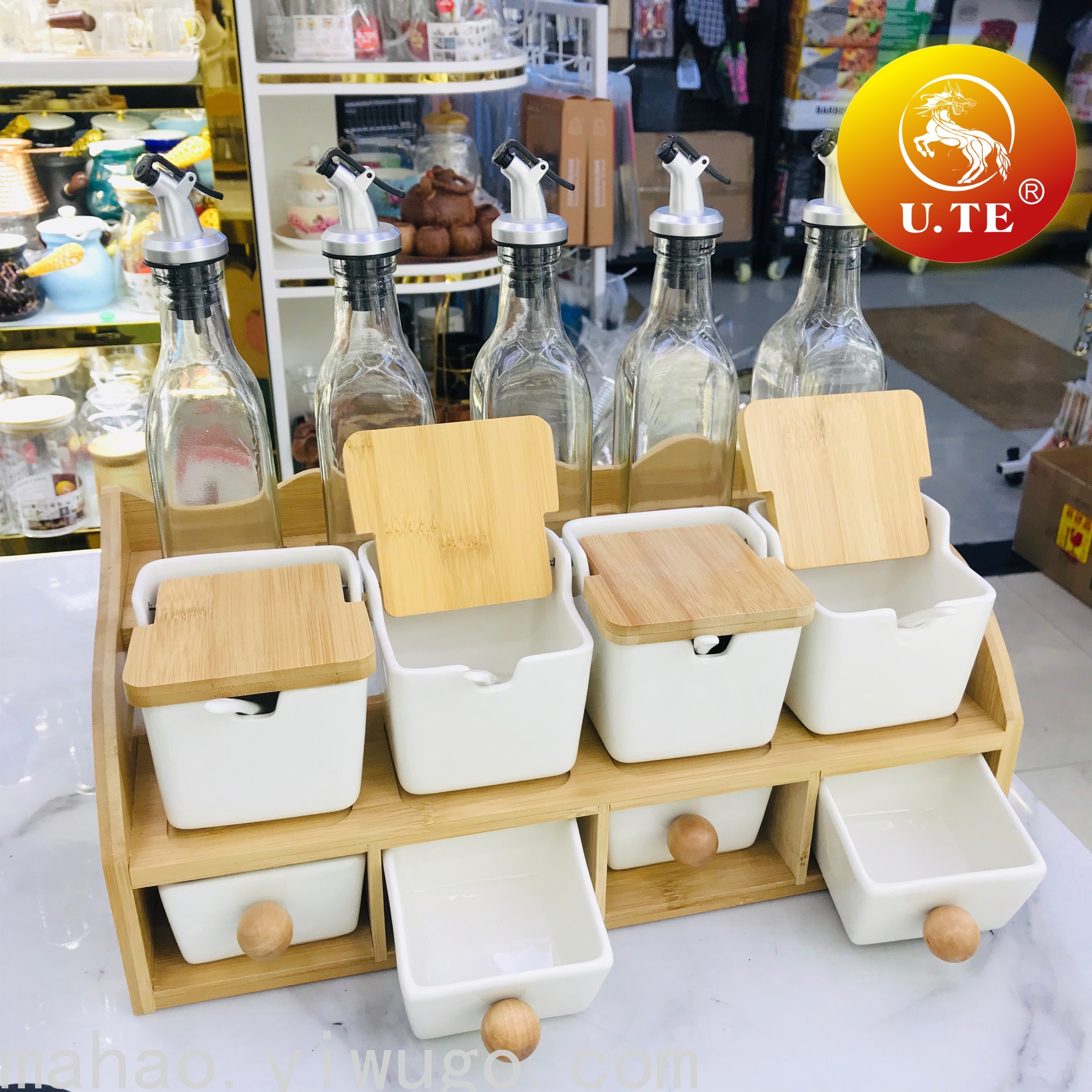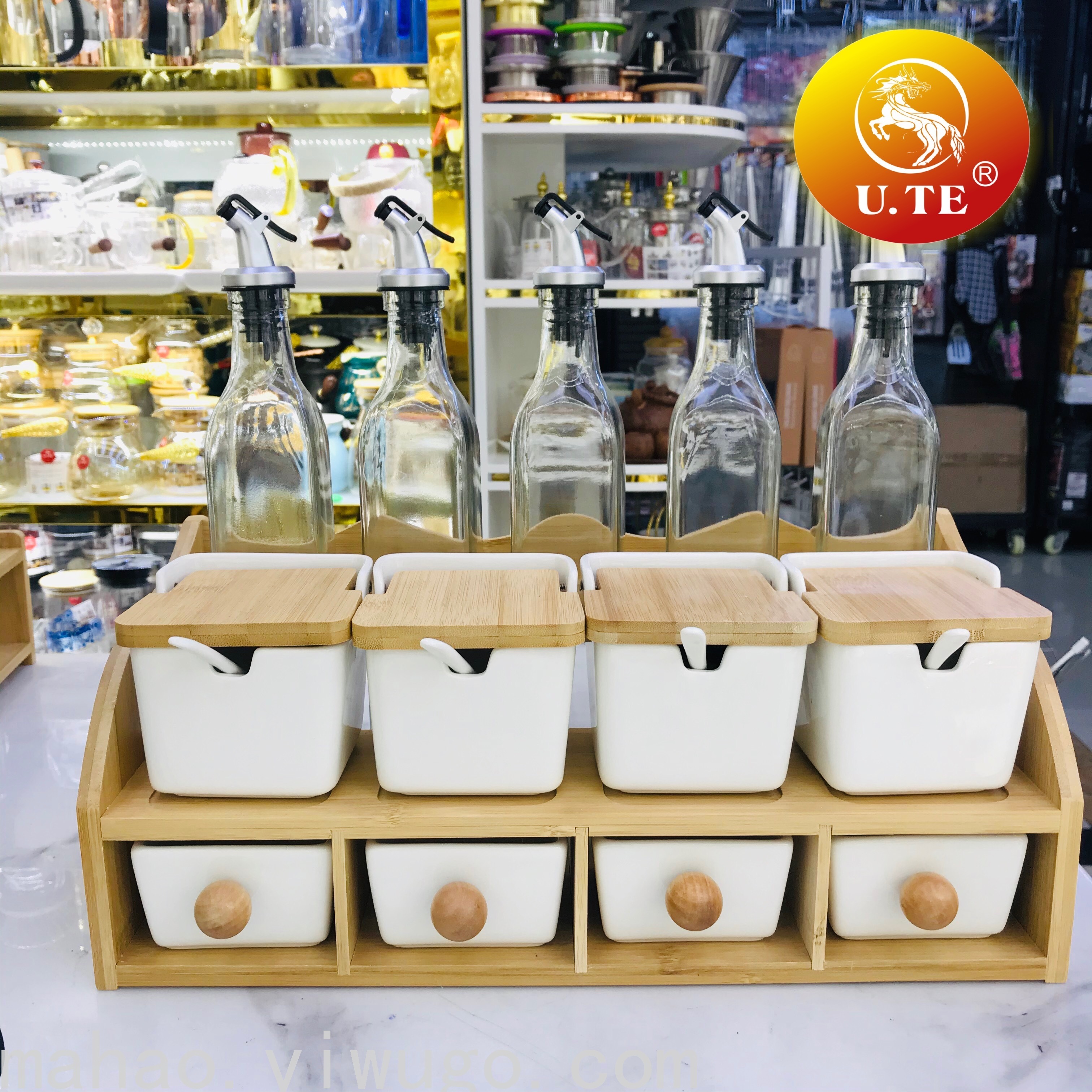 Kitchen Ceramic Seasoning Jar Glass Oil Bottle Set