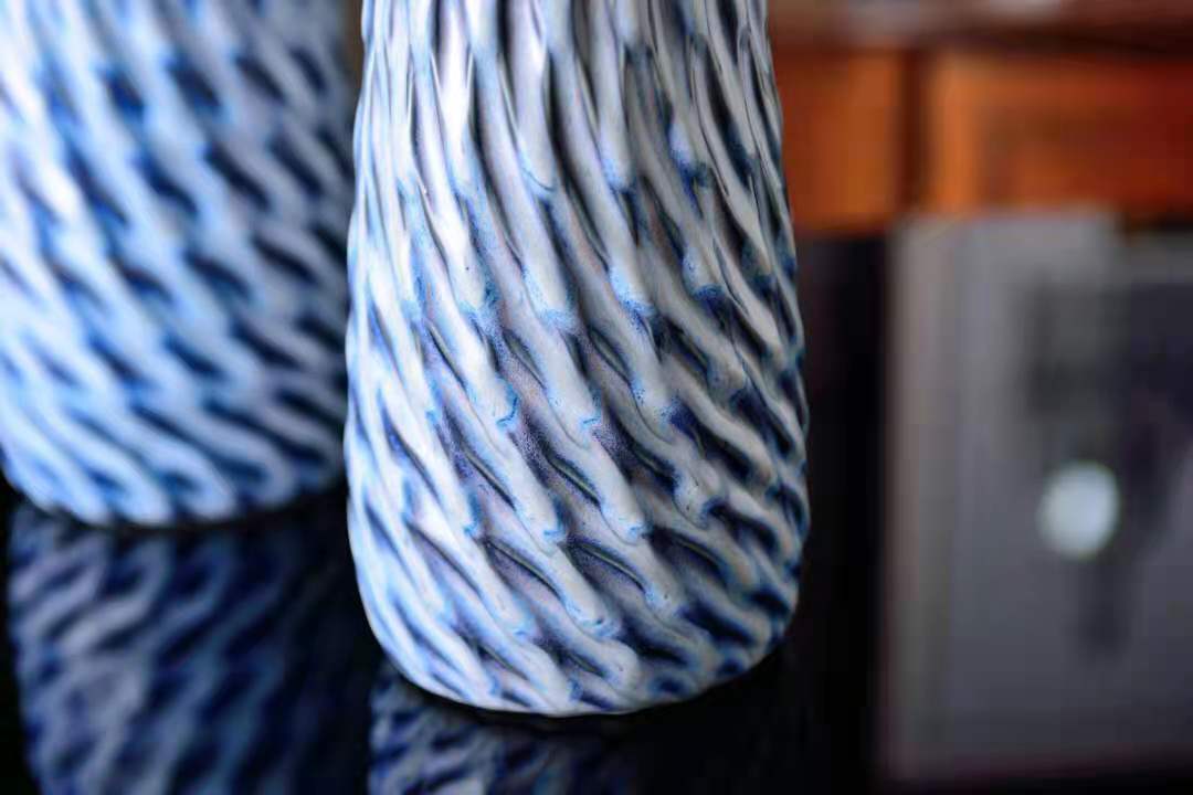 new chinese retro glaze artistic blue ceramic curved pattern vase flower home decorative crafts