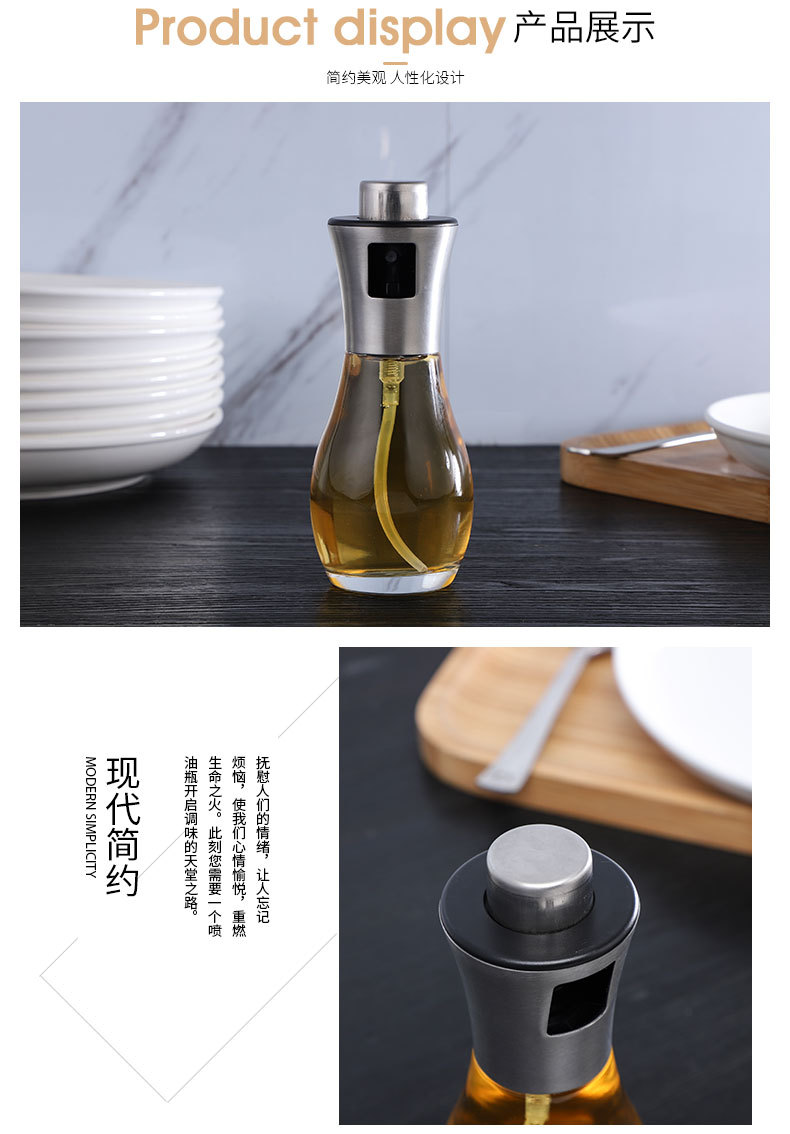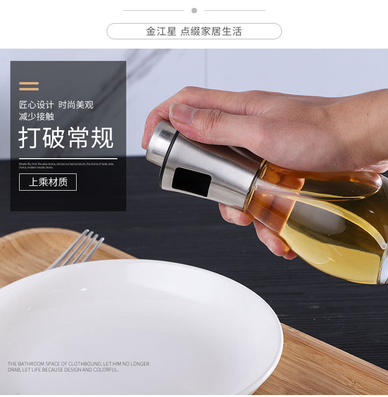 [Customized by Manufacturer] Glass Oil Dispenser Household Kitchen Barbecue Press Type Fuel Injector Stainless Steel Oil Bottle