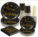 New Bronzing Black Birthday Dot Tableware Paper Cup Pie Paper Pallet Knife, Fork and Spoon Tissue Party Decoration Supplies