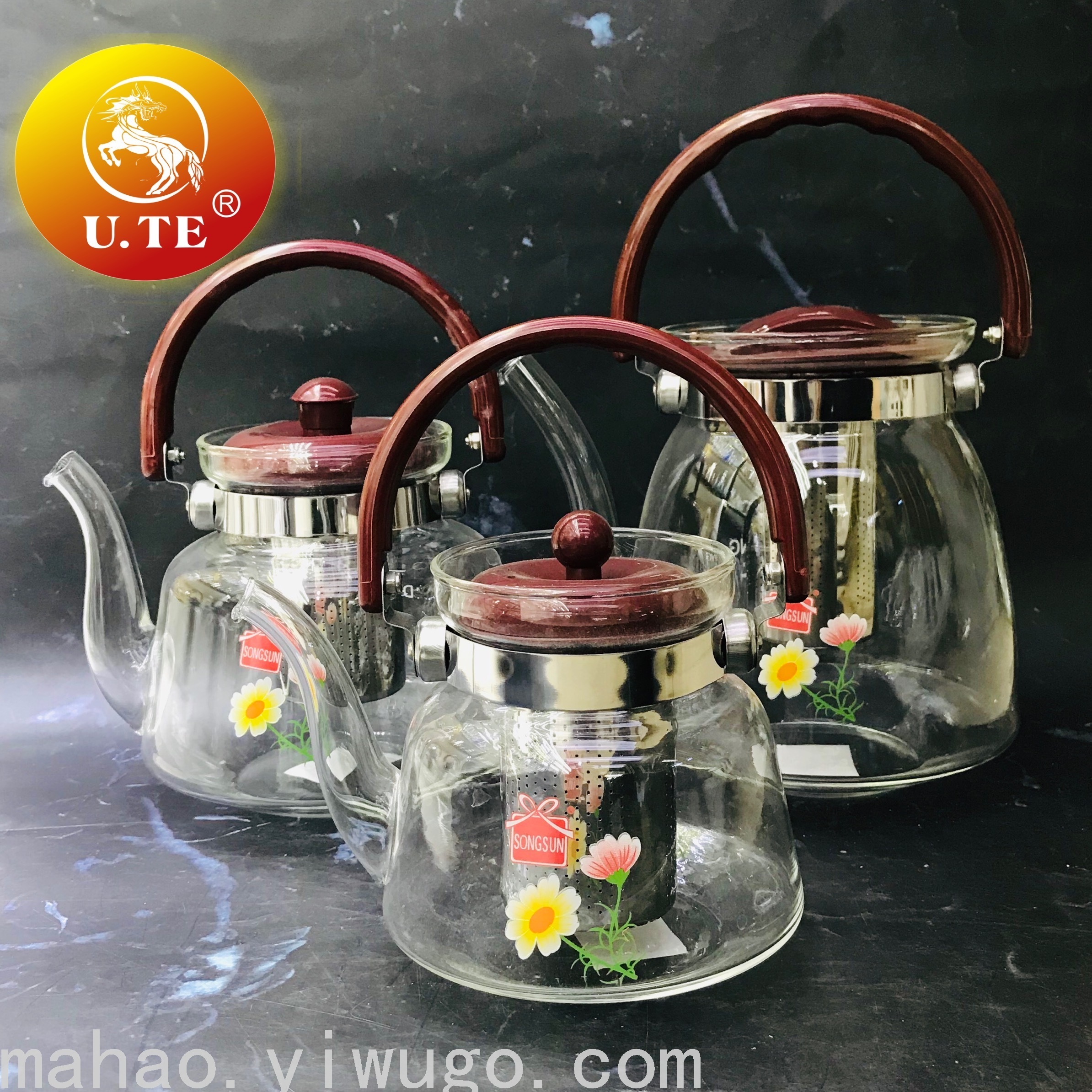 Glass Printing Loop-Handled Teapot