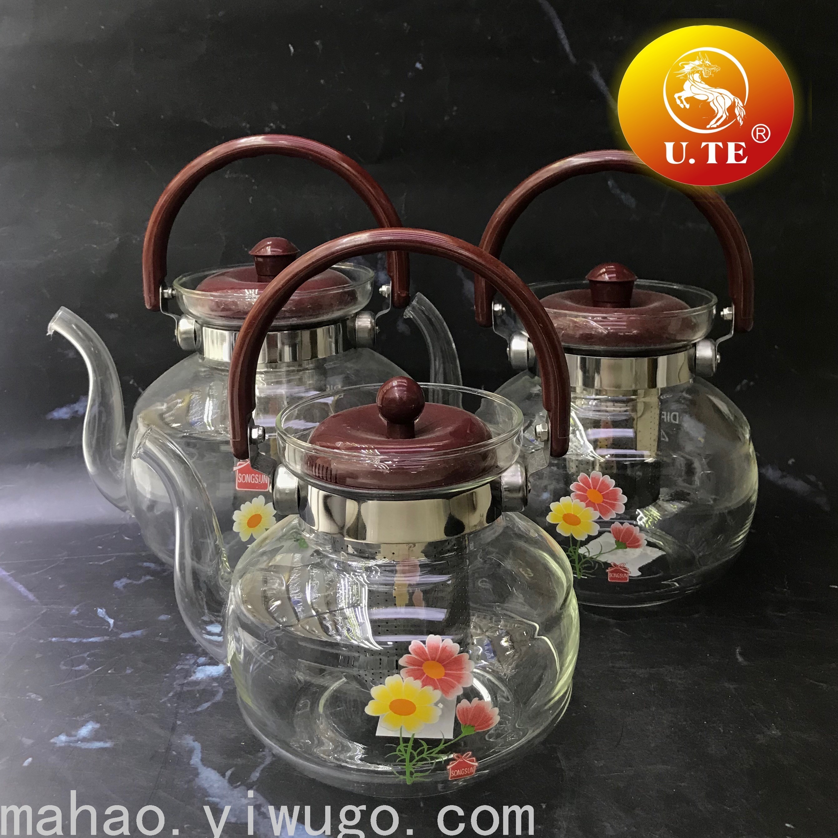 Glass Printing Loop-Handled Teapot