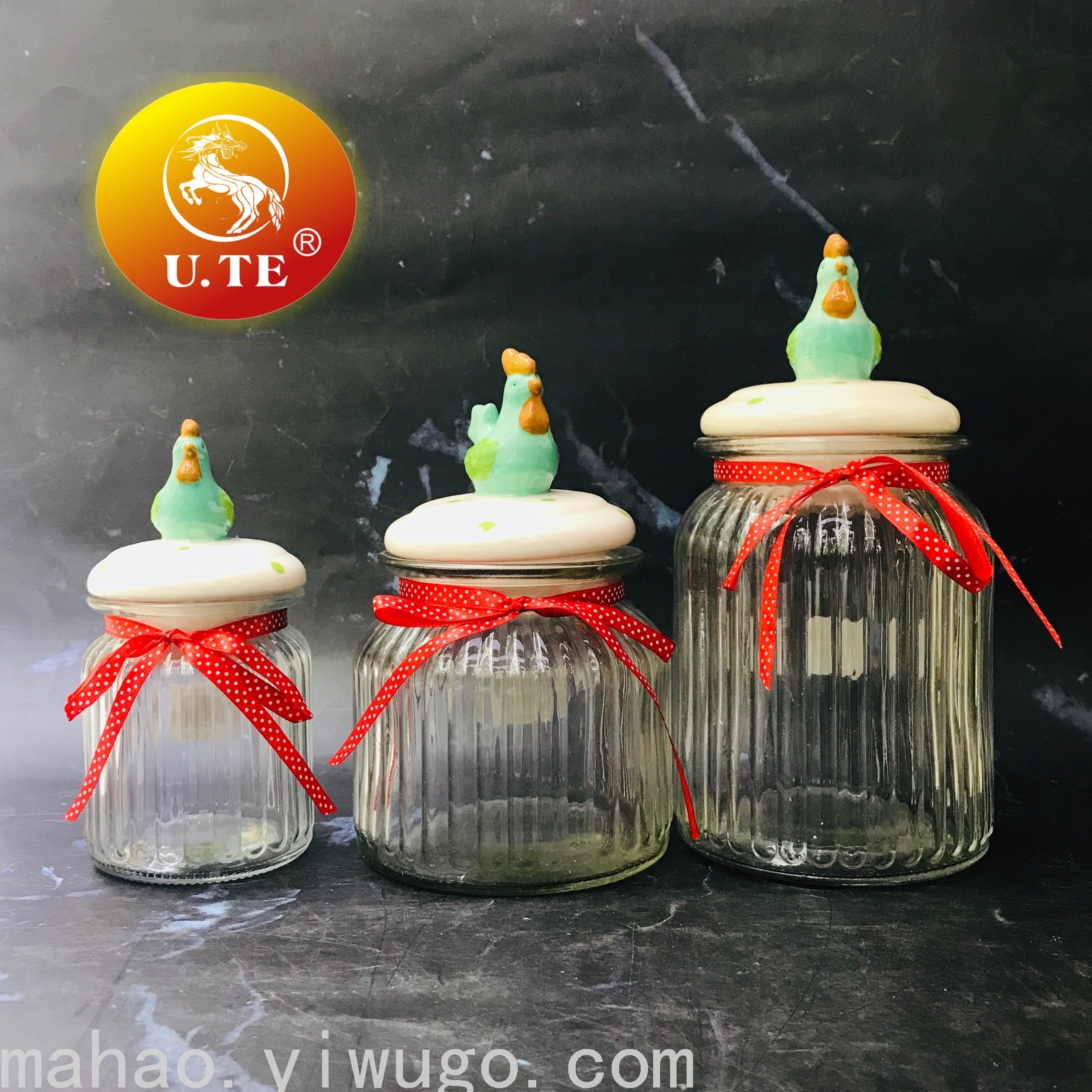 Creative Cock Lid Striped Sealed Jar
