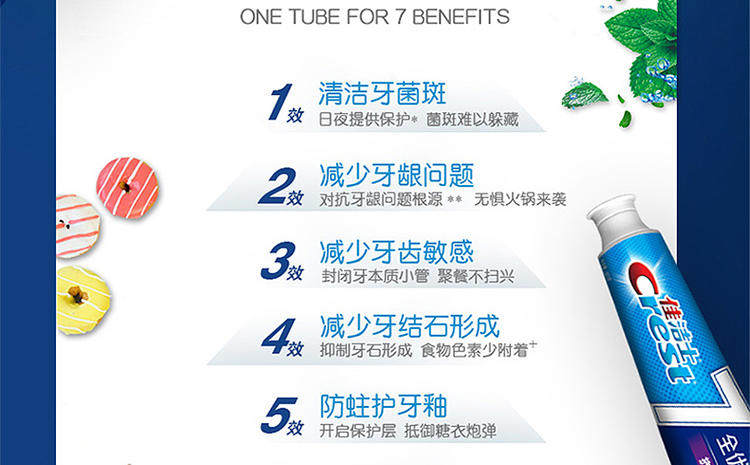 crest quanyou 7-effect anti-plaque toothpaste white teeth fresh breath 120g