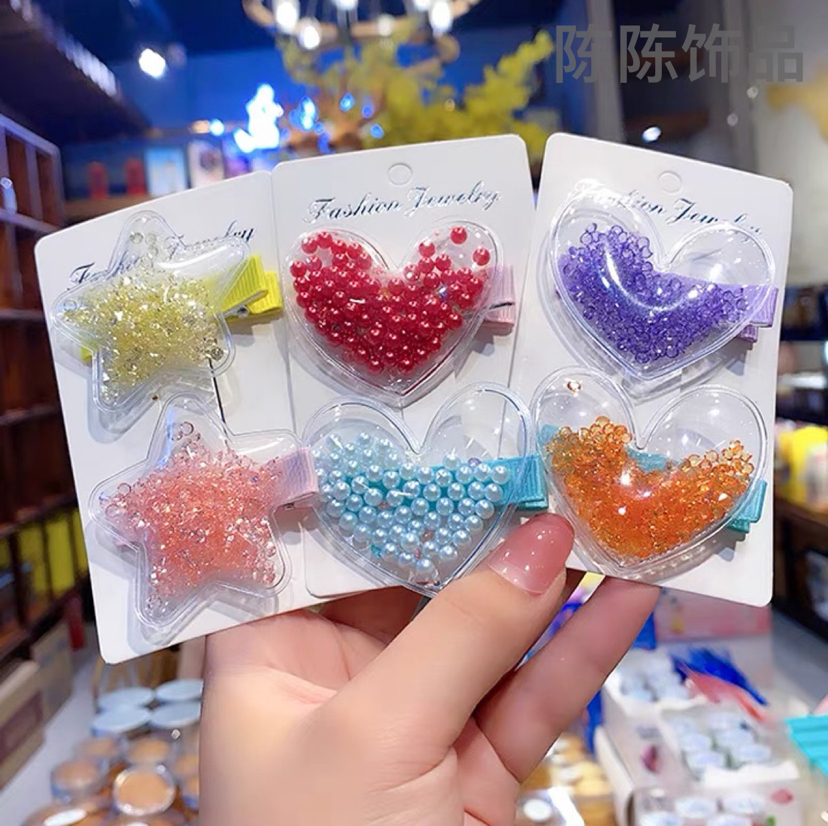 korean style children girl colored loving heart quicksand barrettes transparent sequins hair clip side clip student cute princess hair accessories