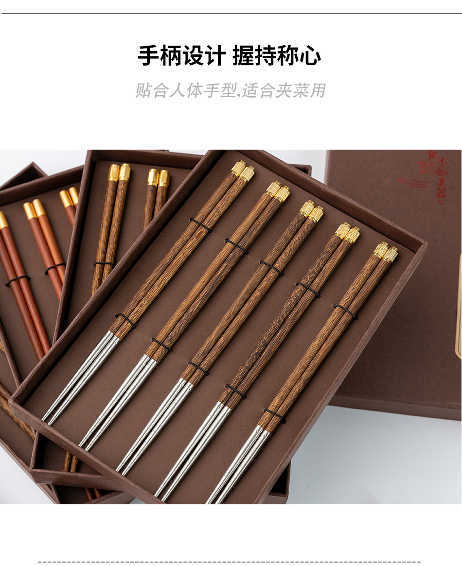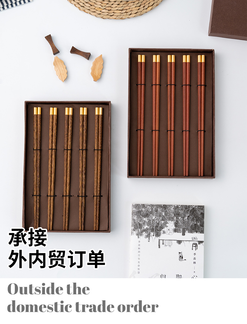 craft chopsticks gift box paint-free wax-free rosewood chopsticks door frame copper head gift chopsticks household tableware custom wholesale