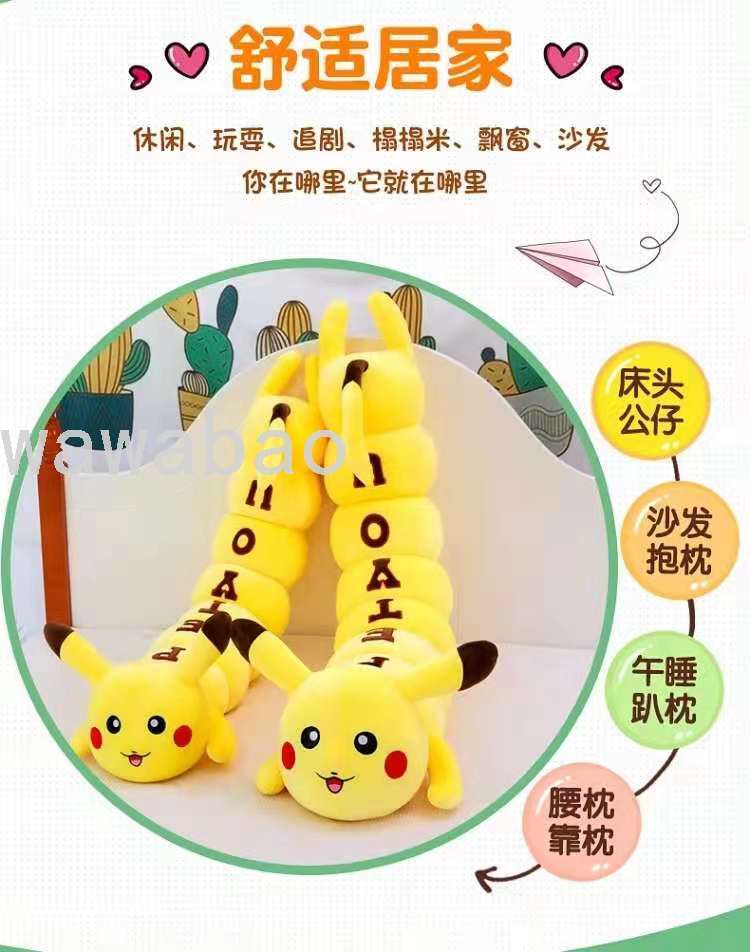 pikachu caterpillar doll plush toys strip leg-supporting sleeping pillow cute caterpillar