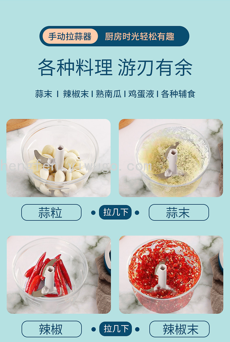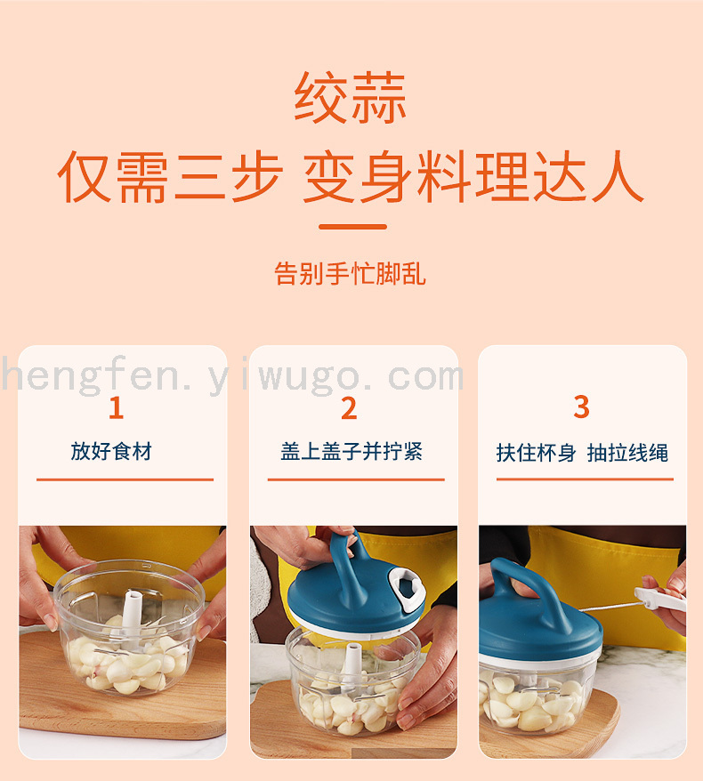 700ml Manual Pull Garlic Masher Multi-Function Food Processor