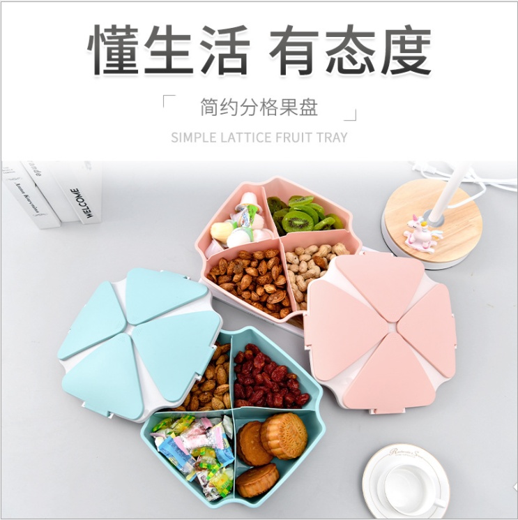 Fashion Creative Four-Leaf Clover Grid Fruit Box Simple Press Type Large Capacity Internet Celebrity Snacks Melon Seeds Storage Box