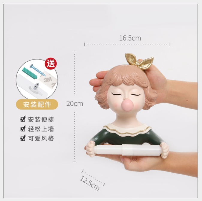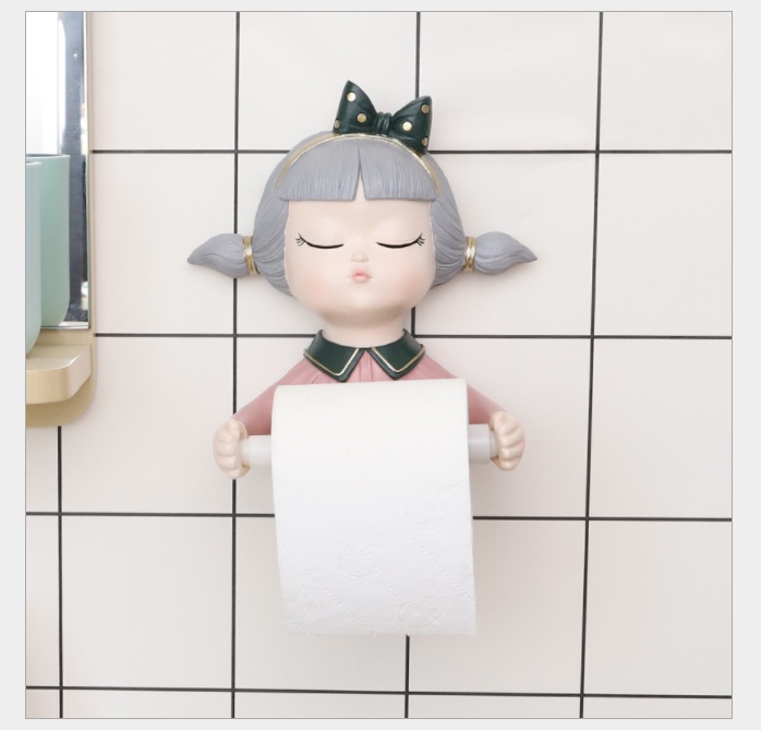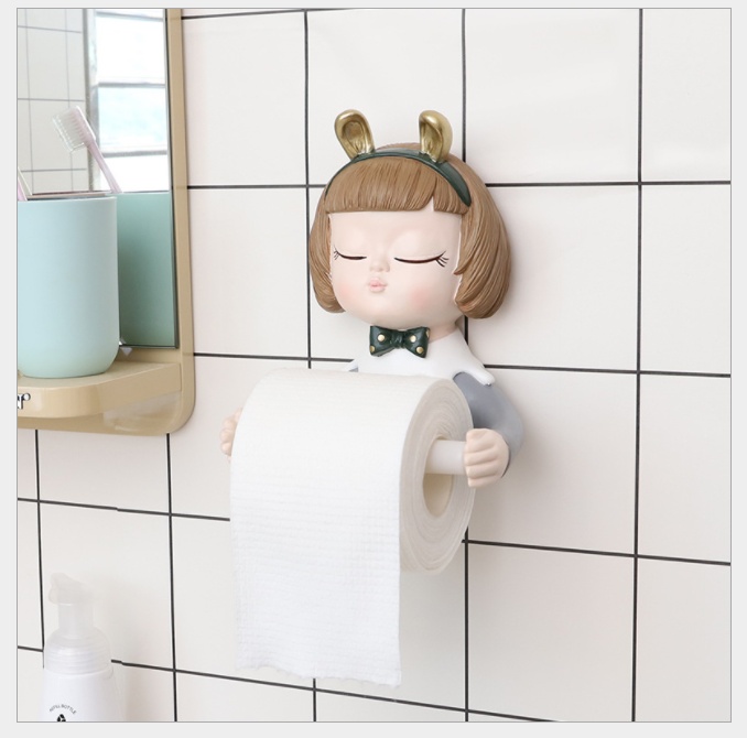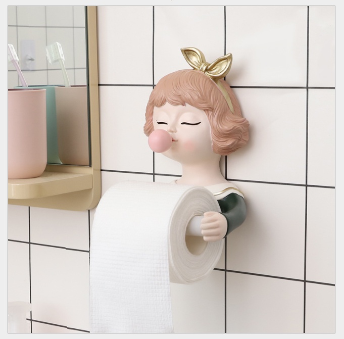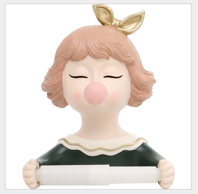 Toilet creative cartoon young girl resin roll stand bathroom roll paper tissue storage resin decorations