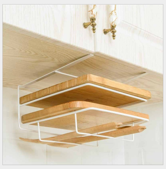 Double-Layer Cutting Board Iron Punch-Free Wall-Mounted Cutting Board Rack Cabinet Cutting Board Rack Storage Rack Kitchen Hanging Cutting Board