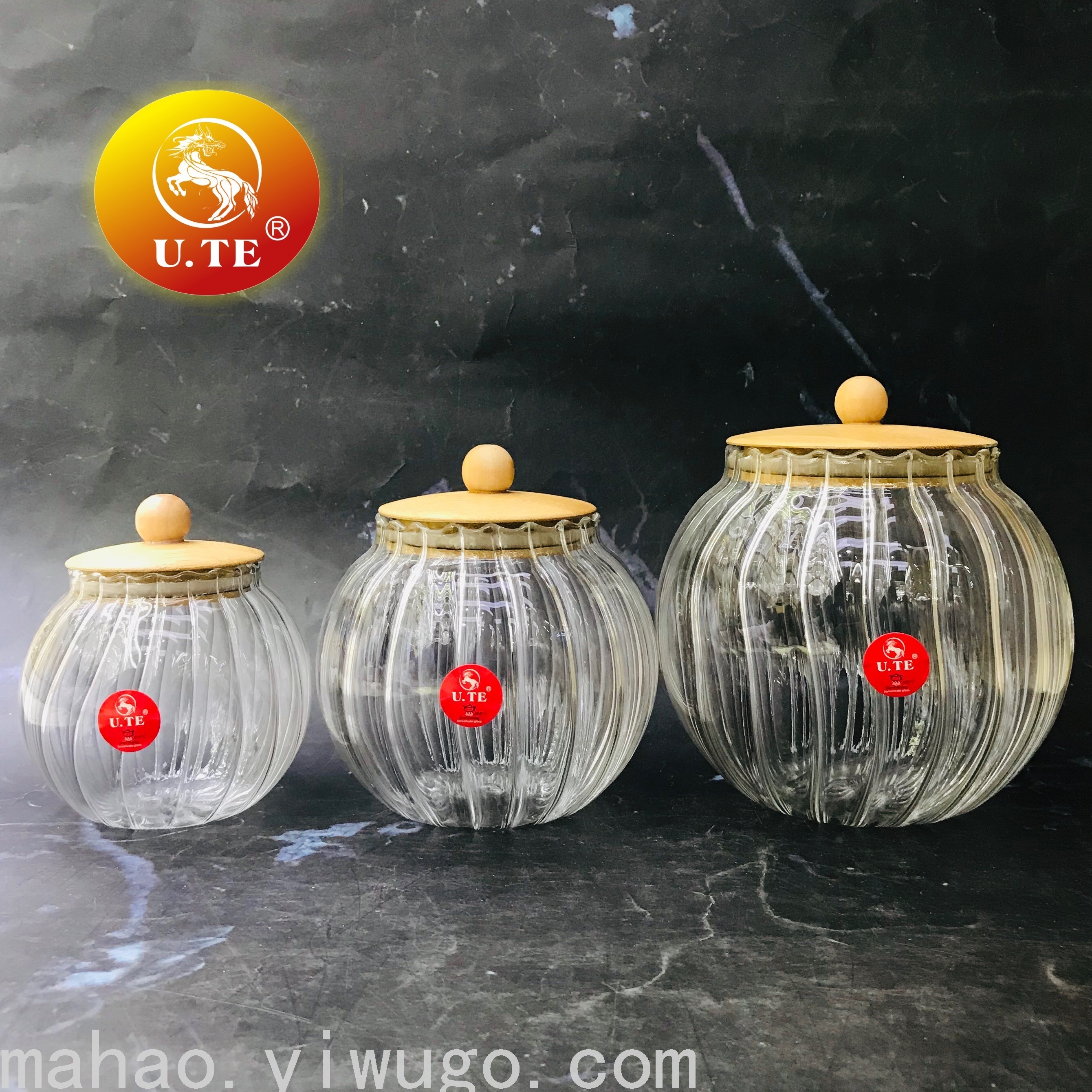 Bamboo Cover Vertical Pattern round Glass Sealed Can