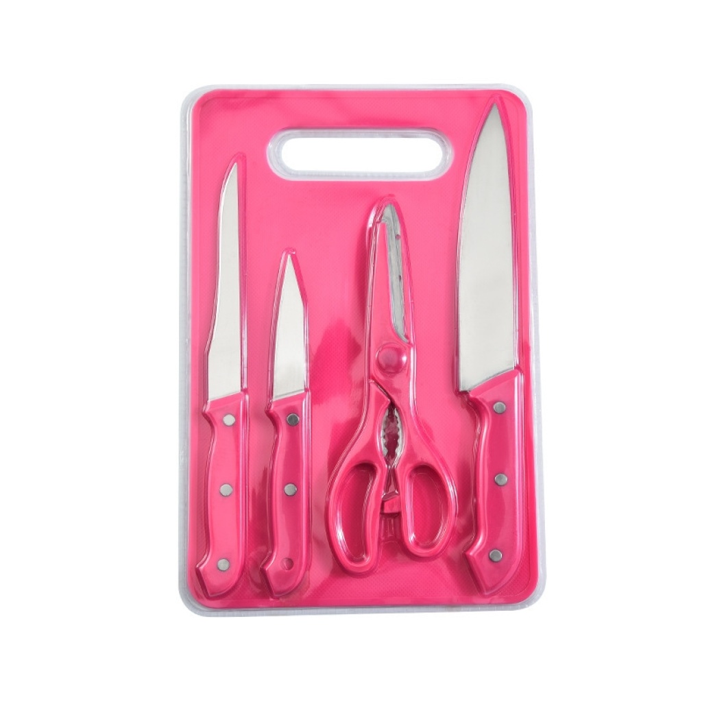 Knife Set with Chopping Board Stainless Steel Chef Knife Household Kitchen Scissors Multi-Functional Fruit Knife Five-Piece Set