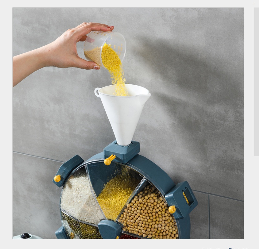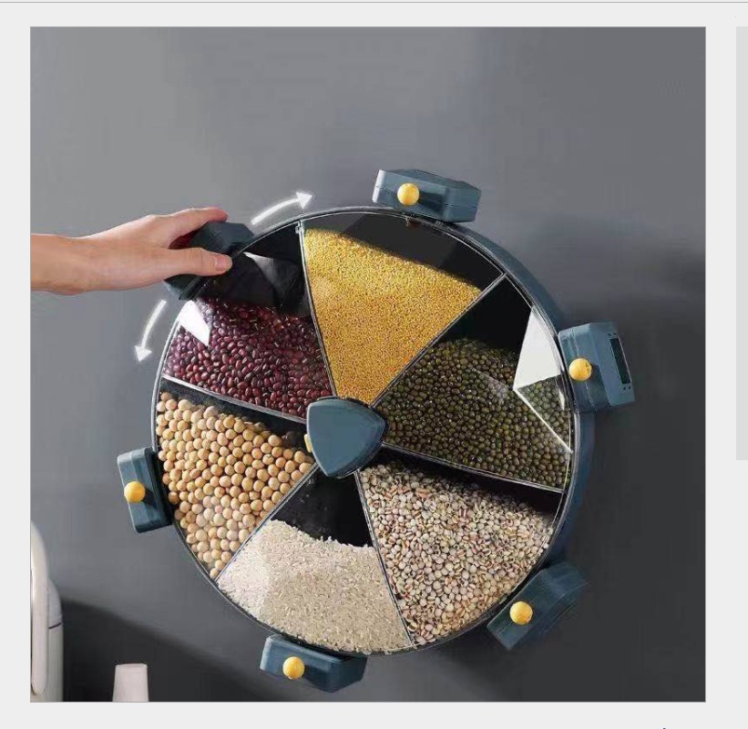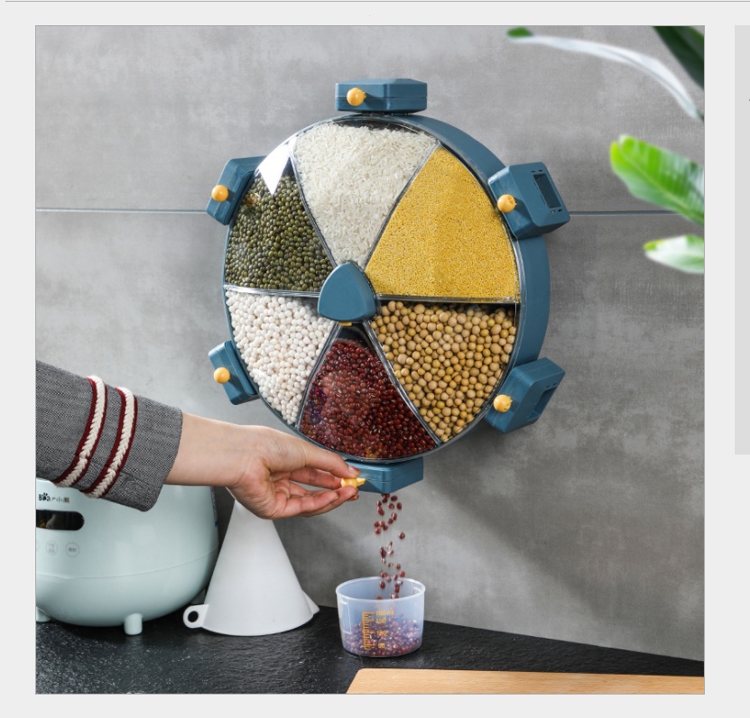 Windmill type cereals storage box punch-free rotating rice bucket compartment wall-mounted household rice bucket insect-proof moisture-proof