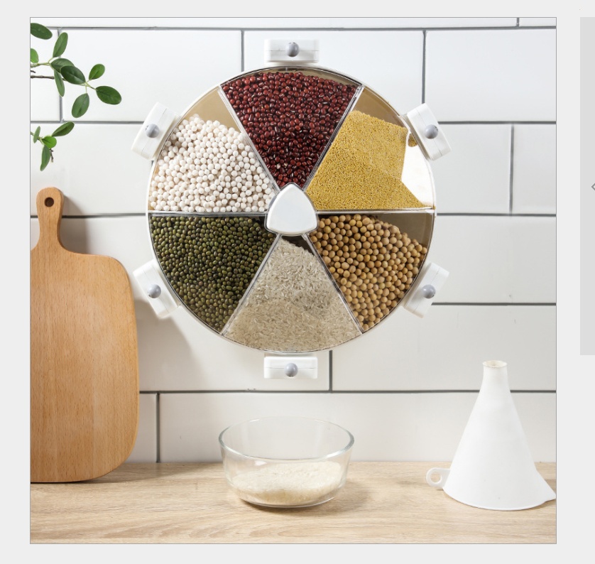 Windmill Type Cereals Storage Box Punch-Free Rotating Rice Bucket Compartment Wall-Mounted Household Rice Bucket Insect-Proof Moisture-Proof