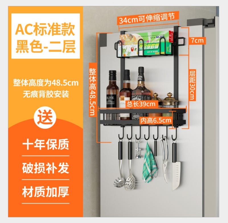 Nail-free refrigerator pylons side wall storage rack side side side kitchen seasoning rack wall-mounted plastic wrap storage rack