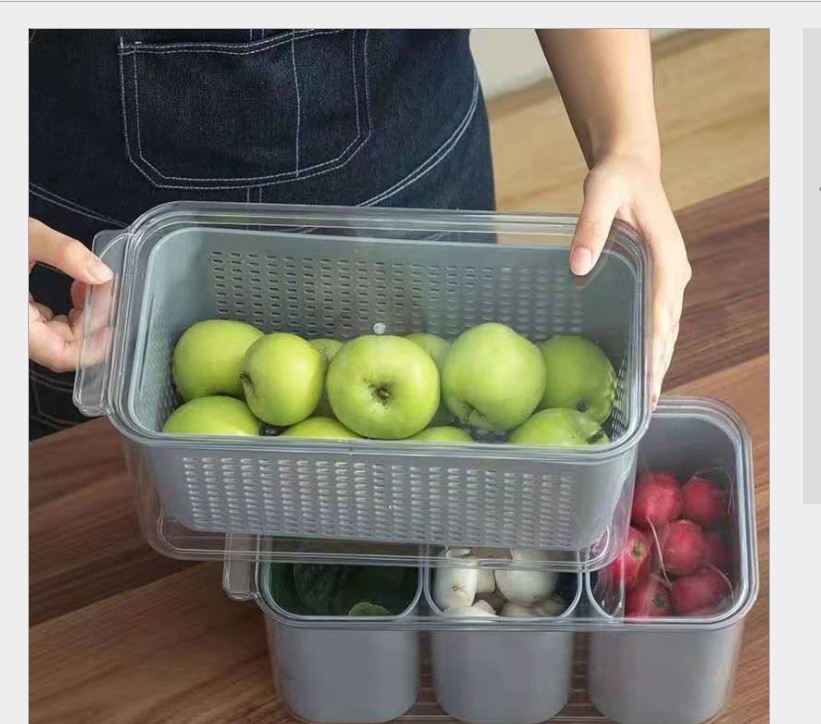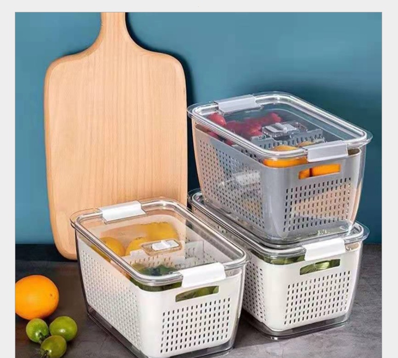 Japanese Style Draining Crisper Refrigerator Storage Box Kitchen Plastic Vegetable Basket Fruit Washing Double Layer Transparent Subpackaging Sealed