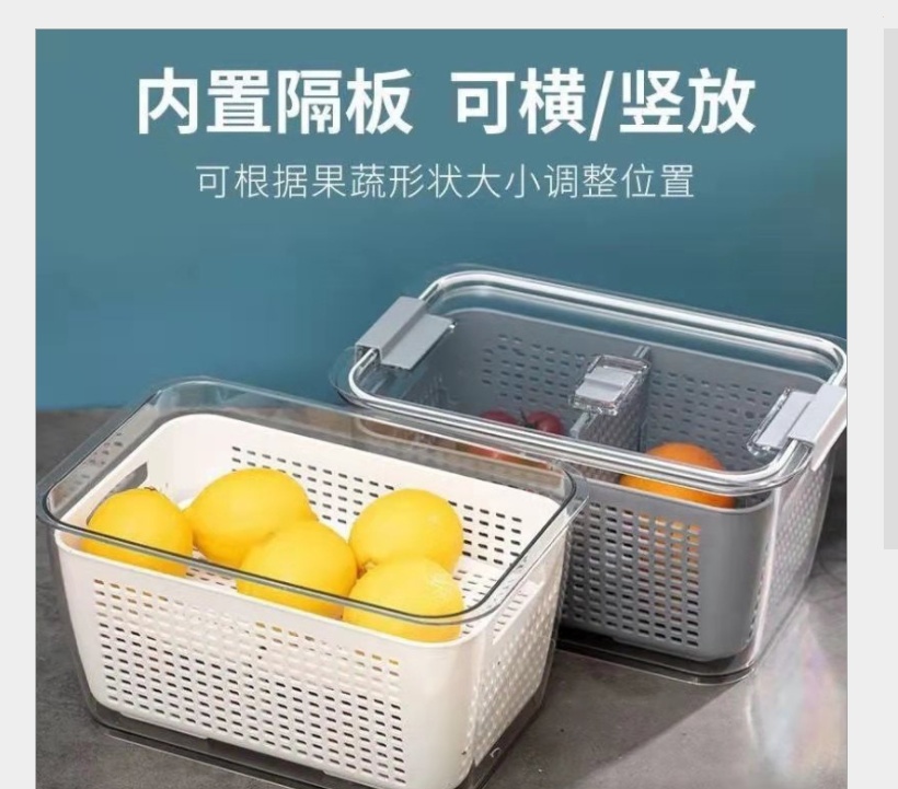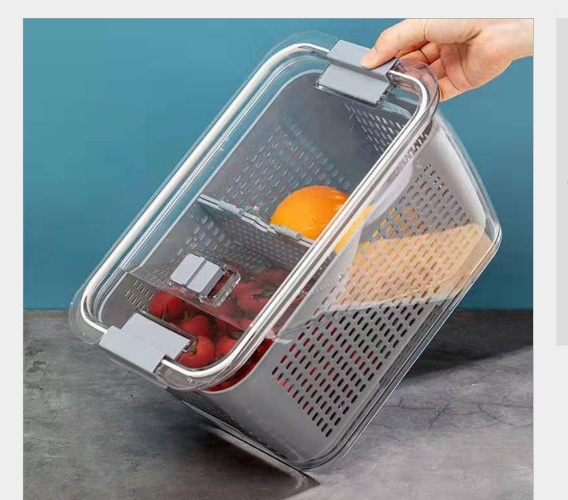 Japanese style draining crisper refrigerator storage box kitchen plastic vegetable basket fruit washing double layer transparent subpackaging sealed