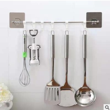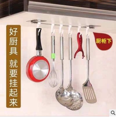No Trace of Creativity Strong Load-Bearing Punch-Free Kitchen Bathroom Multi-Purpose Hanging Stainless Steel Six-Piece Hook