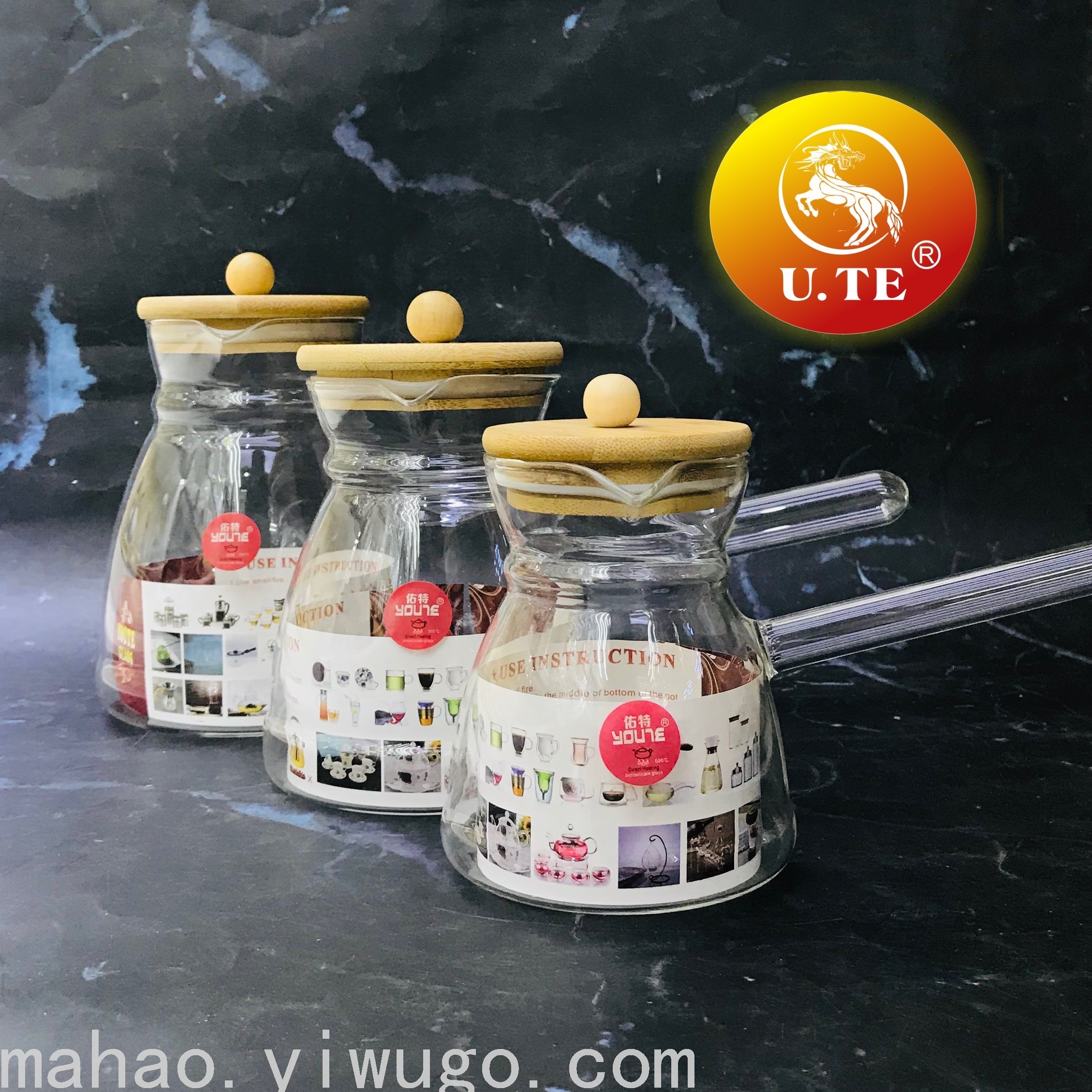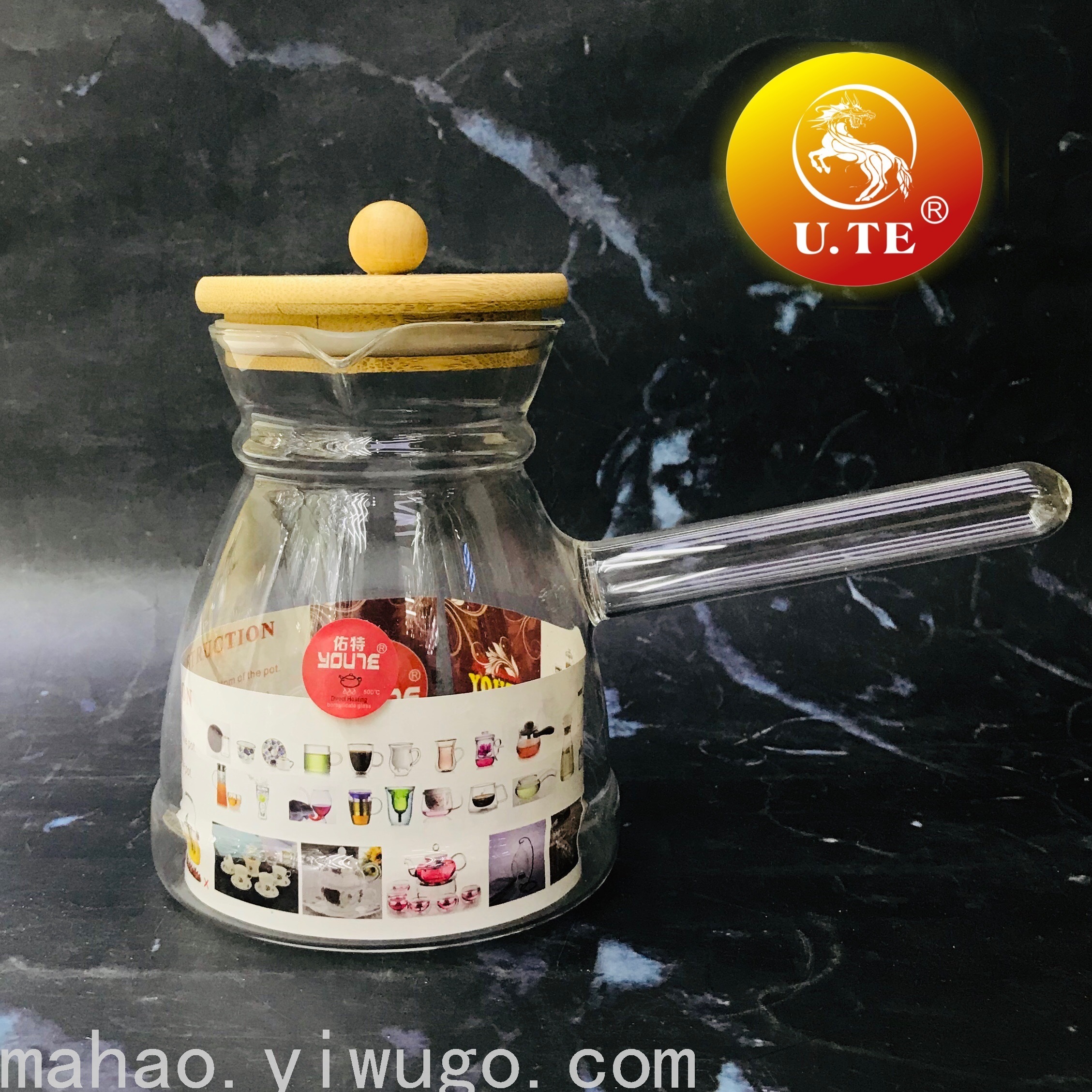 Bamboo Cover Glass Side Handle Pot