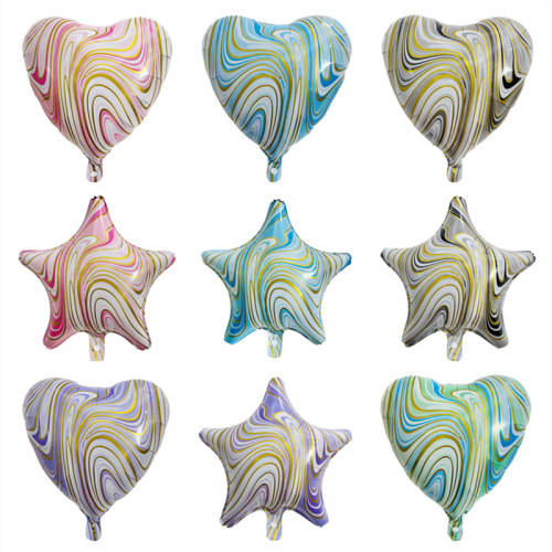 Aluminum Balloon Agate Love Heart Balloon Birthday Party Colorful Cloud Pattern Heart-Shaped Five-Pointed Star Aluminum Balloon