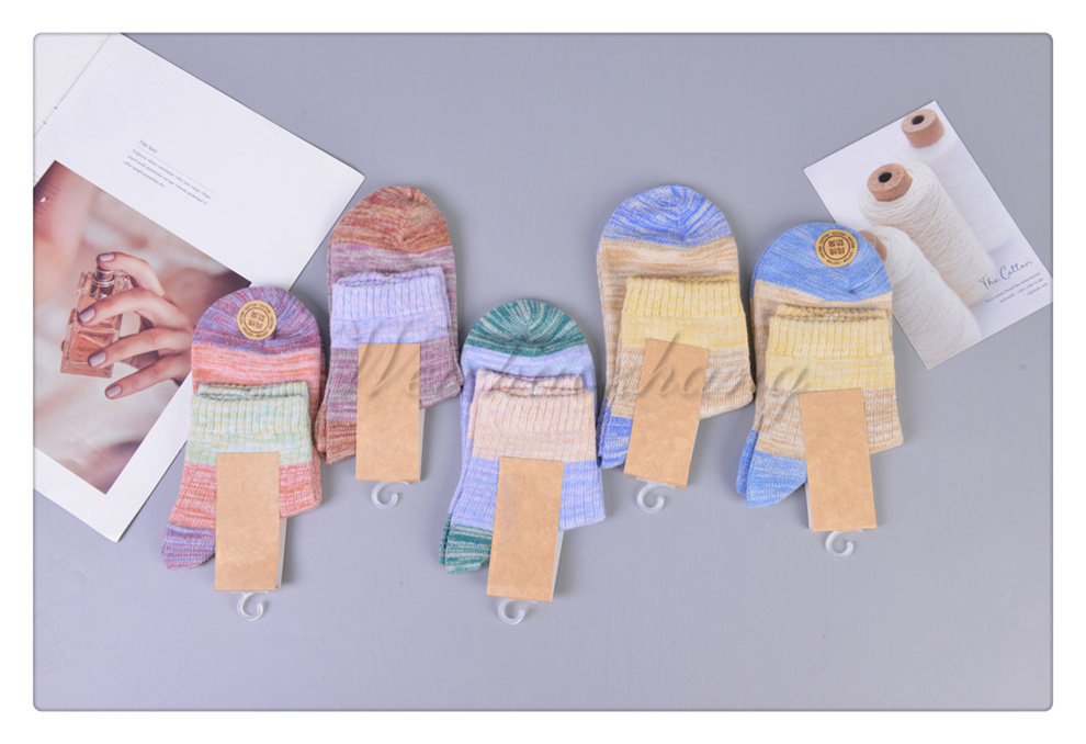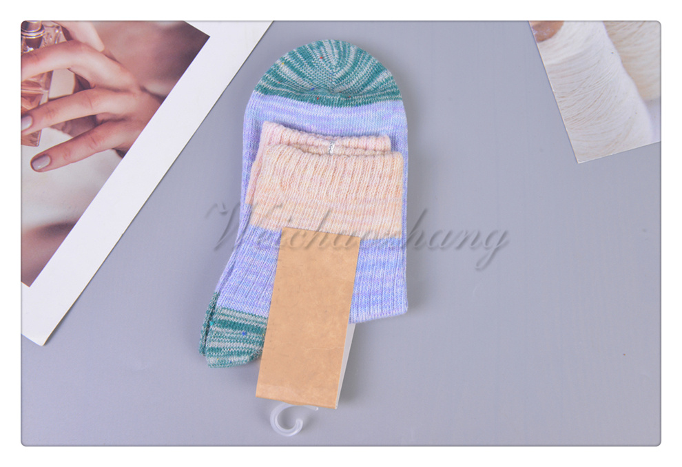 Product Name: Classic Trendy Color Block Striped Pattern Mid-calf Socks Japanese-style Rough Thread Thickened Warmth High-top Wool Cuff Socks Available in Multiple Colors