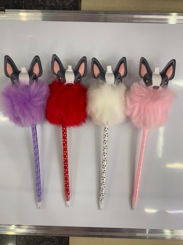 Flying stationery puppy shape hair ball ballpoint pen school supplies gift craft pen feather pen cute creative pen, material pp + fleece cloth + pu, color can be made into white, blue, pink, Plum Red, purple, yellow, you can also choose the specified color, sample customization, picture design, labeling, refill color optional, manufacturer self-produced and self-sold, welcome new and old customers to purchase
