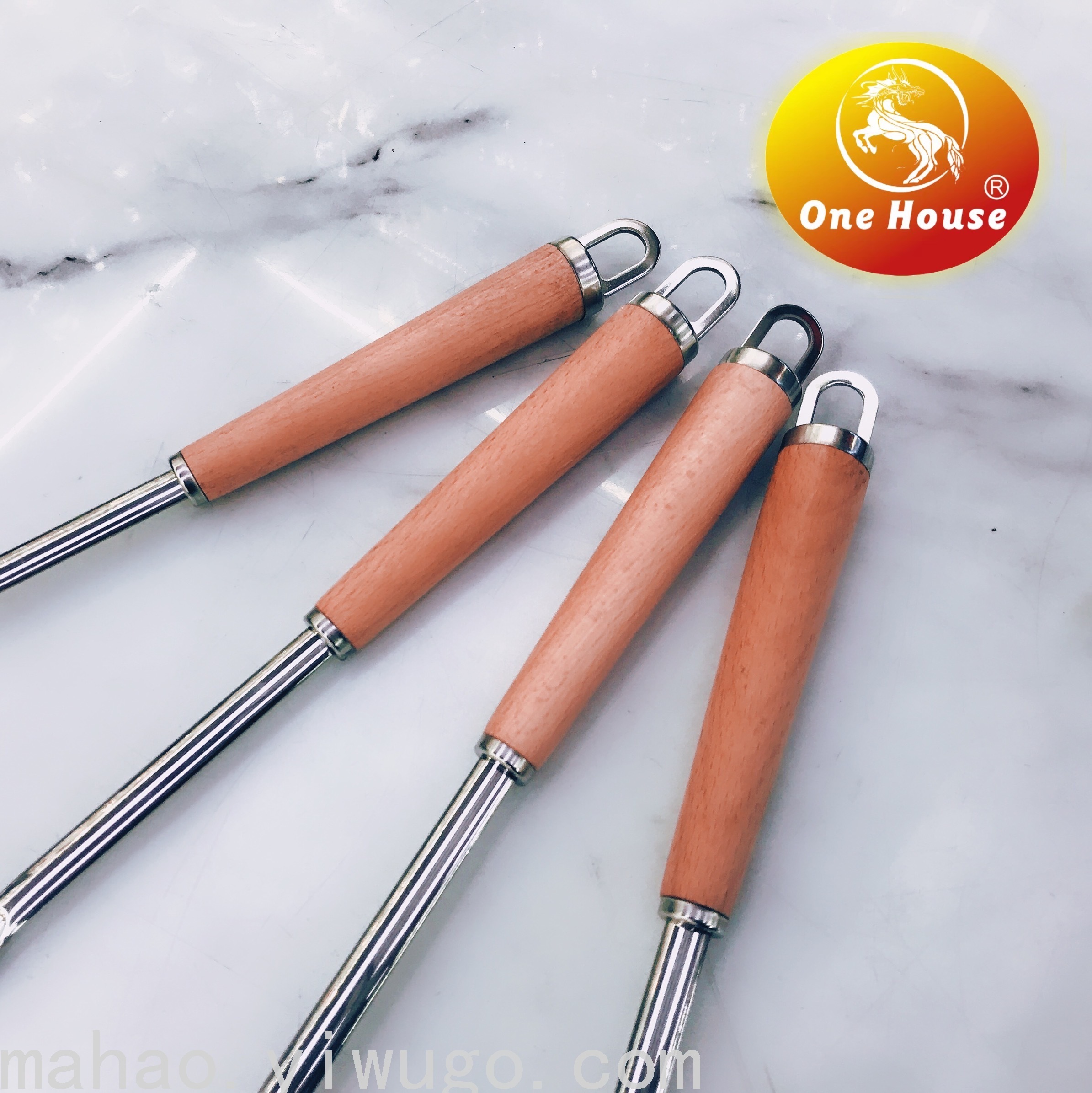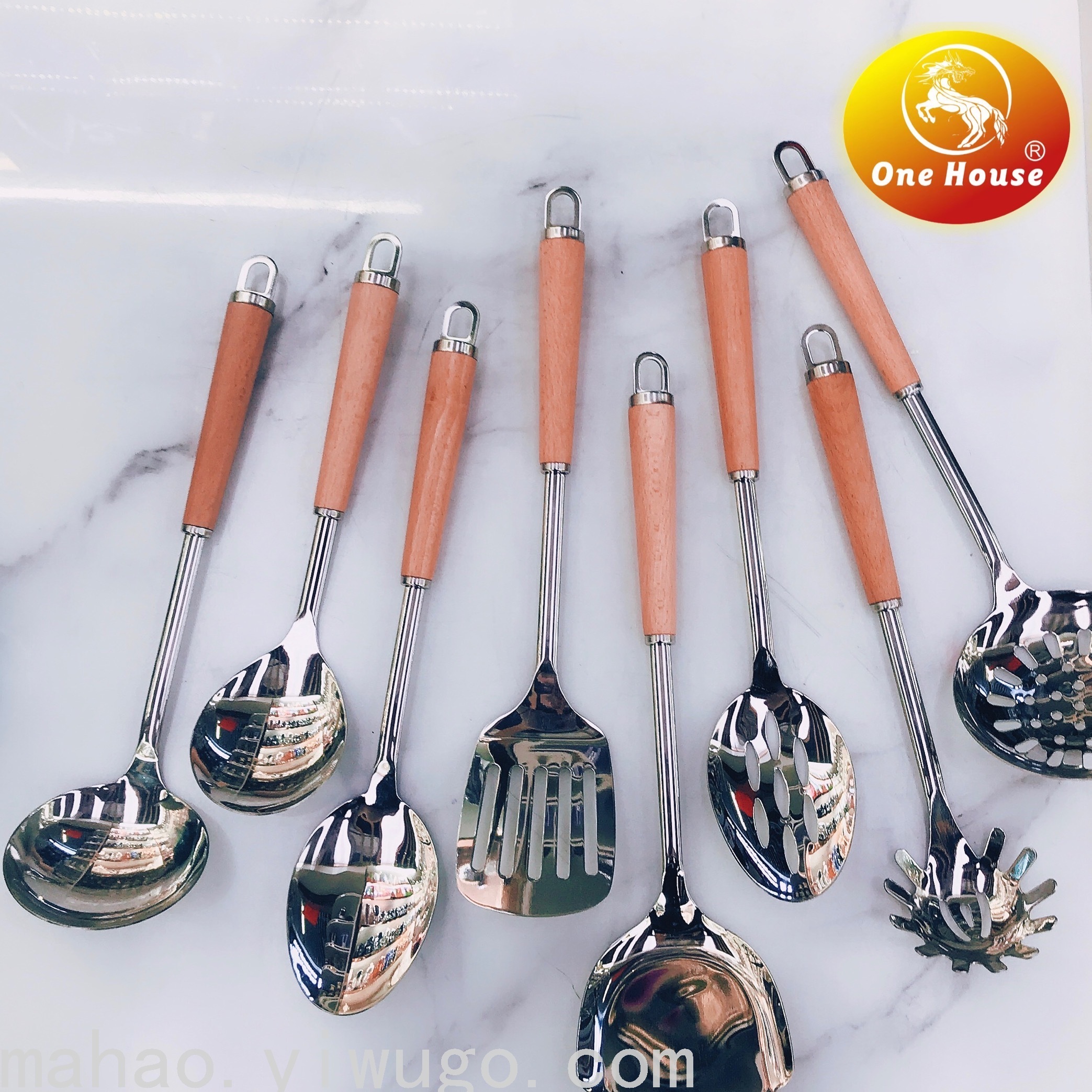 Stainless Steel Tapered Wooden Handle Kitchenware