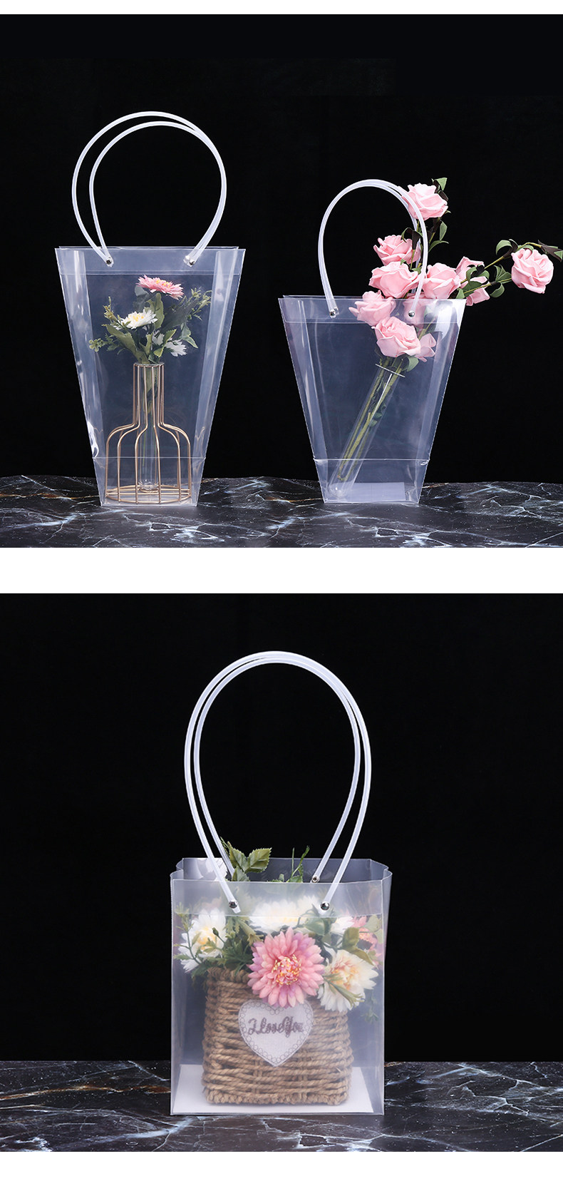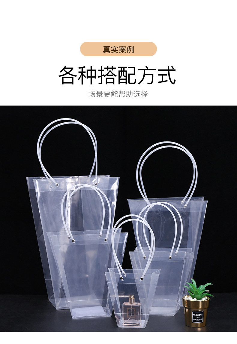 Plastic Pp Fresh Flower Bag PCs Portable Transparent Ladder Bag PVC Flower Bag Flower Arrangement Gift Bouquet Flower Shop Packaging