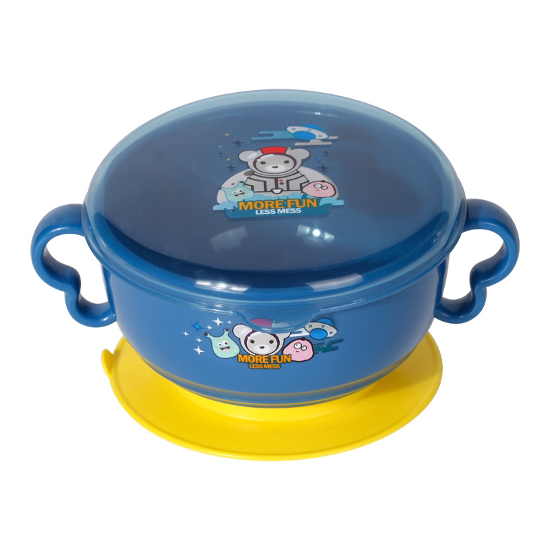Baby Infant Child Safety Tableware Training Cartoon White Bear Snack Catcher Three-Piece Suit Drop-Proof and Hot-Proof Solid Food Bowl
