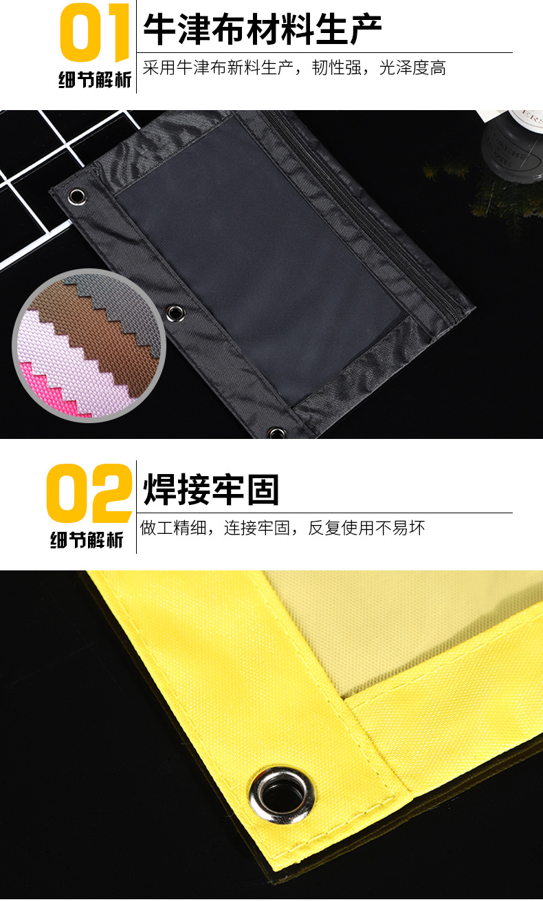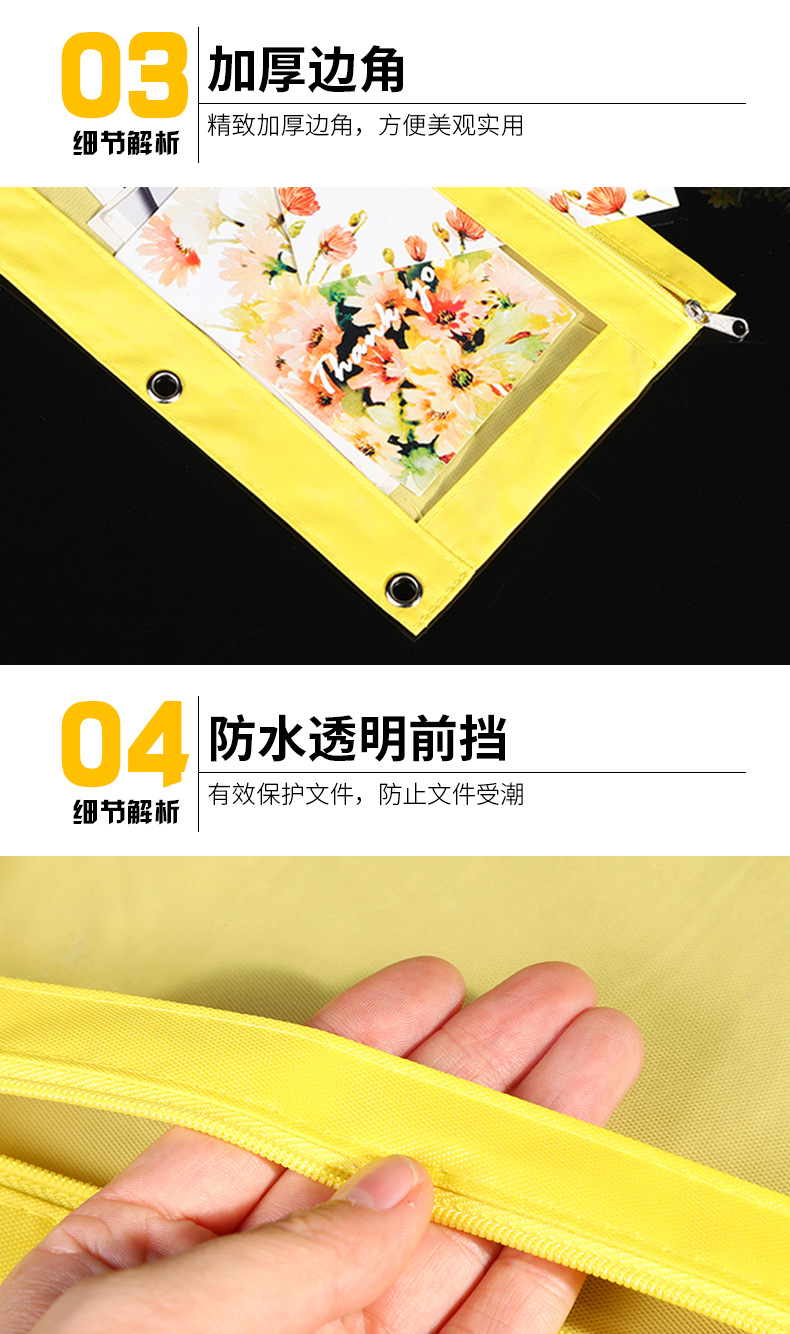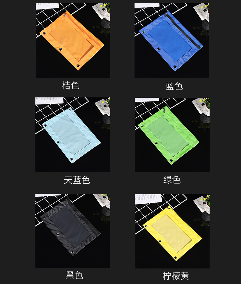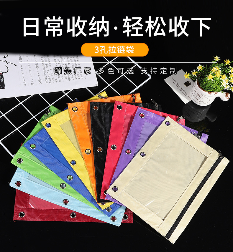 Factory Direct Sales Durable Oxford Cloth Three-Hole Zipper Bag Learning Office Waterproof Transparent Thickened Corner Folder