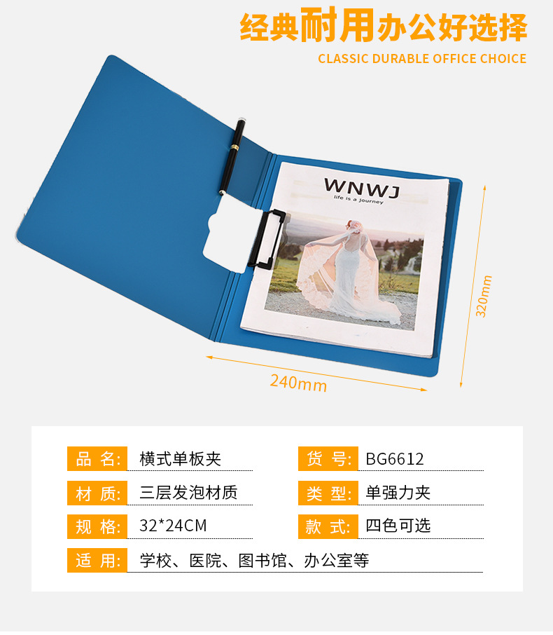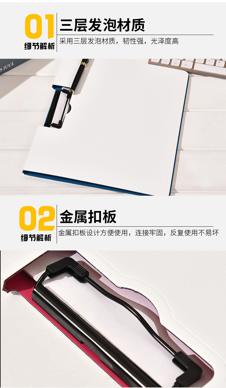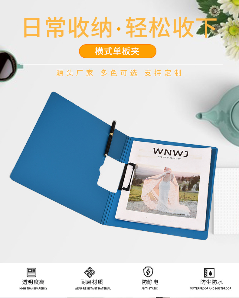 Factory Direct Sales Single Strong Clip Multi-Functional Folder Foam Board Horizontal Single Board Clip Office Document Folder Wholesale
