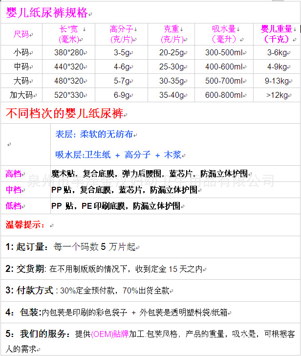 We are a manufacturing company. For many years, we have been committed to the research and production of diapers and sanitary pads, specializing in OEM branded processing. We have rich experience in foreign trade exports. Our products are sold to the national and global markets.
